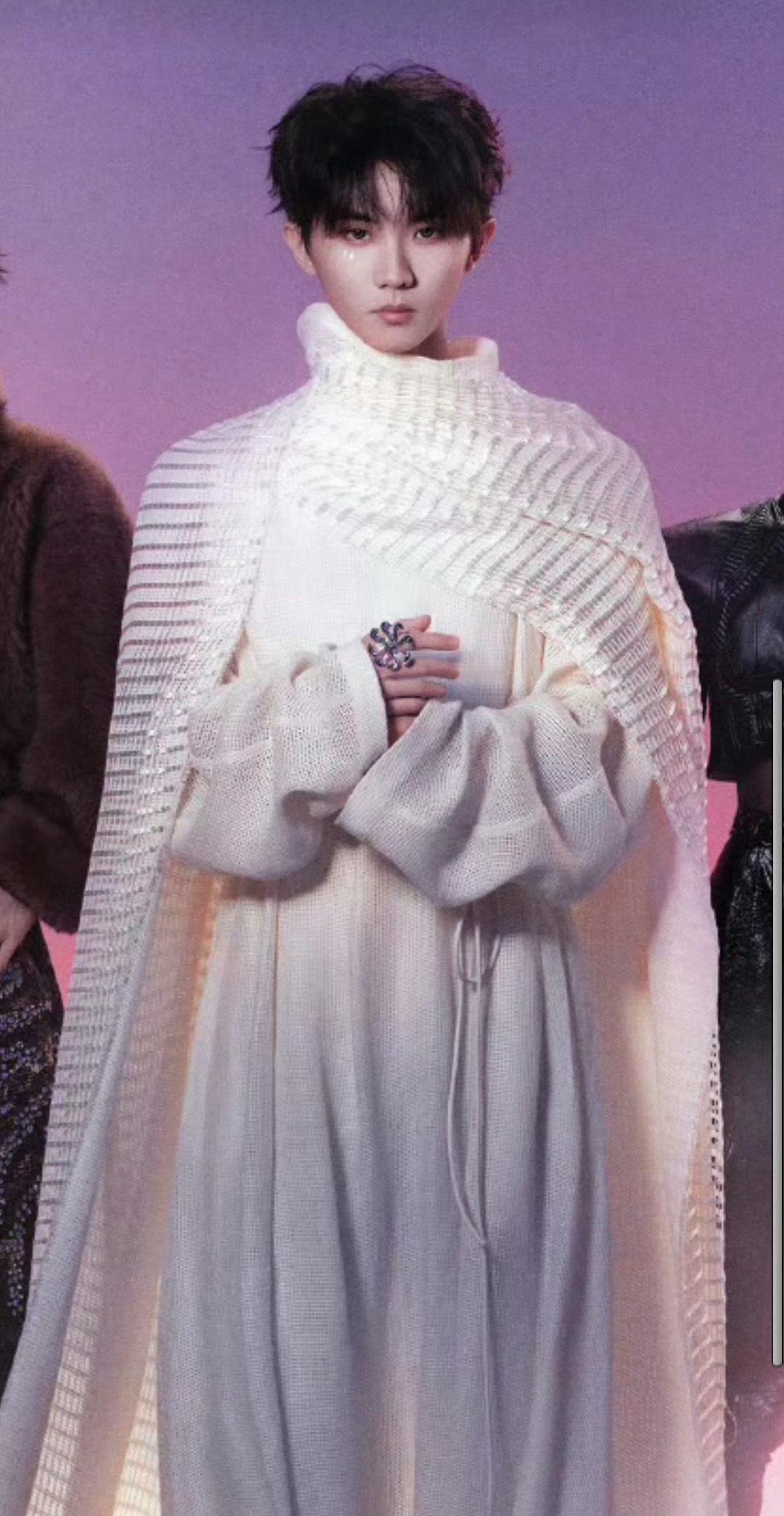 马嘉祺未来感白月光 谁懂马嘉祺这套造型,简直神来的吧!纯白色针织look+长披风,自带温柔和空灵感清冷又治愈,太美了马嘉祺神来的吧