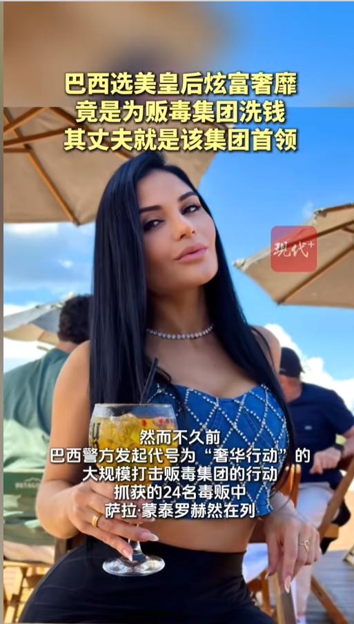 “选美皇后竟是毒贩?”近日,巴西,当地警方发起了一场大规模打击贩毒集团的行动,抓获了24名毒贩,其中一女子竟是去年某地的选美冠军,平时生活奢靡,高调炫富,还是个网红呢!网友:有钱人的钱多少是真正干净的呢? 据媒体4月17日报道,这名被抓的女子名叫萨拉·蒙泰罗,今年36岁,身姿绰约,是去年巴西乌贝兰迪亚市选美大赛的冠军。她还是个网红,经常在社交媒体上炫富。 豪车、游艇、动不动就举办的音乐会,这些在常人眼里难以企及的东西,只是她炫耀的一些小资本。她的生活十分的奢靡,动不动就在社交媒体上炫耀,让所有人都知道,她很有钱。 可是又有谁能想到,光鲜亮丽的外表之下,竟藏着颗蛇蝎之心呢?她竟然是一个毒贩集团的成员,而她的丈夫,就是这个集团的首领。 萨拉所打造的奢靡的人设,并不只是为了炫耀,满足虚荣心,更多是走了个灯下黑,给贩毒集团洗钱。每一件奢侈品的背后,都是鲜血淋淋。 不久前政府的打击活动中,她被抓了,才终于让人看清了她的真面目,可惜的是,身为首领的丈夫,却依旧在逃。 网友看后表示,这可真是美的没有底线了,毒贩都应该被枪决!打击贩毒,是每一个国家都该做的事,选美冠军又能怎样,哪怕是政府高官,也应该被制裁! 信息来源:《巴西选美皇后炫富奢靡,竟是为贩毒集团洗钱,其丈夫就是该集团首领》现代快报