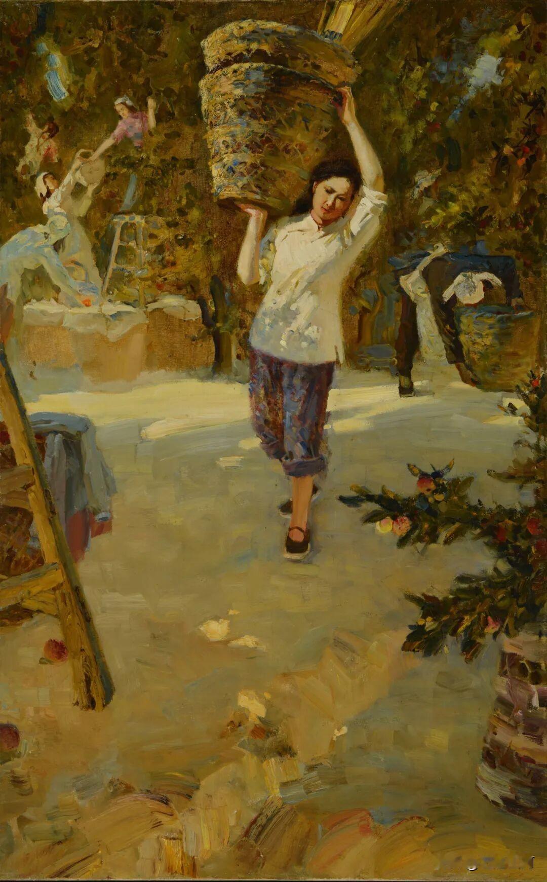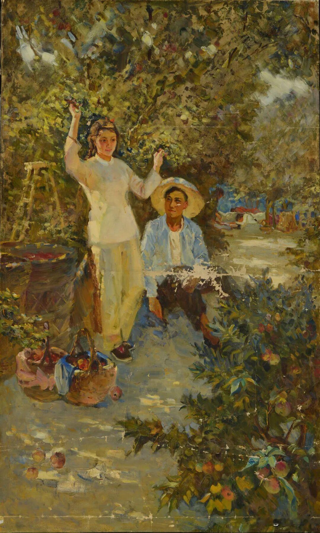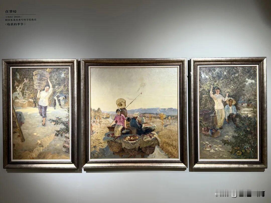 擅长大型题材创作的油画家任梦璋,23岁时的油画作品《收获的季节》,很有诗意和生活气息,阳光的色彩表现是亮点,当时他正在中央美院“马训班”跟随马克西莫夫学习油画。 任梦璋,中国著名油画家,1934年生于河北束鹿,1955-1957年参加苏联专家马克西莫夫在中央美院主持的油画训练班。三联画《收获的季节》是他的毕业作品,又名《摘苹果》,描绘果园丰收的场景,现藏于中央美术学院美术馆。作品带一点装饰性,对阳光色彩描绘细腻,体现出马克西莫夫教学中强调的写生观察与自然光表现技法。 任梦璋1978年起历任鲁迅美术学院油画系主任、研究生导师、副院长兼美术研究所所长,艺术教育创作研究中心教授,大型绘画工作室副主任导师,辽宁美术家协会顾问。 他的代表作是《平型关大捷》《攻克锦州》《清川江畔围歼战》《赤壁之战》等大型题材油画,被中国美术馆、中央美院美术馆、国家博物馆等机构收藏。