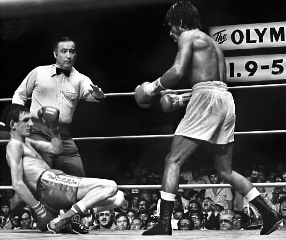 图5-6 1980年9月19日 欧文在美国洛杉矶和世界轻量级拳击冠军,墨西哥人卢佩·平托进行一场比赛,此时在世界拳击联合会最轻量级排名上,平托排第一,欧文排第四,双方战至第九回合,欧文被击倒,他口里流出了鲜血,但他表示自己可以继续比赛,第十二回合,欧文再次被击倒,不省人事,欧文被送往洛杉矶医疗中心,他再也没有醒来,七周以后,欧文被宣告死亡 ,年仅24岁