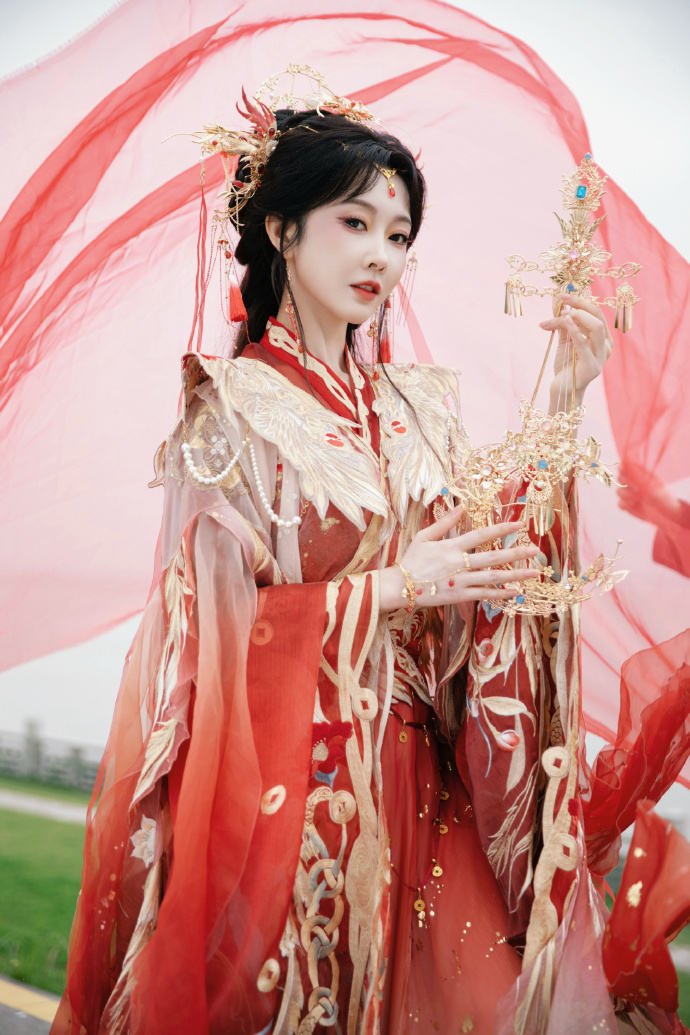 宣璐宣璐红金汉服美到封神宣璐东方神女具象化 宣璐这红金汉服造型美到封神,真正东方神女具象化了呀,这套古风的造型真的是花神在世。