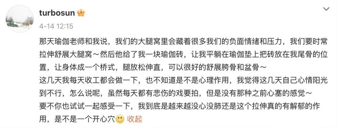 邓超劝大家别试孙俪的瑜伽动作 孙俪分享舒缓身心的桥式瑜伽动作,邓超火速亲身体验,结果反手就劝所有人别轻易尝试,一句“我刚刚试了一下,劝大家还是别试了”笑点拉满,看来这个动作对超哥来说难度超标啦~