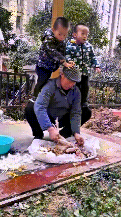 乖乖嘞!这画面看着真是暖心又得劲!爷爷蹲那儿吭哧吭哧收拾鸡,俩小孙孙一点不闲着,噔噔噔踩着爷爷腿就往上爬,爷爷愣是不吭声,该咋干活咋干,这隔辈亲真是浓得化不开! 爷爷身子骨真硬朗,俩淘小子压着腿还能稳稳当当收拾鸡,一点不耽误事儿。小孙子们挤挤挨挨瞅着,估计盼着赶紧喝上香喷喷的鸡汤,这爷孙仨的样子,真是透着说不完的幸福,看着就叫人心里暖乎乎的!孙子的心情 搞笑