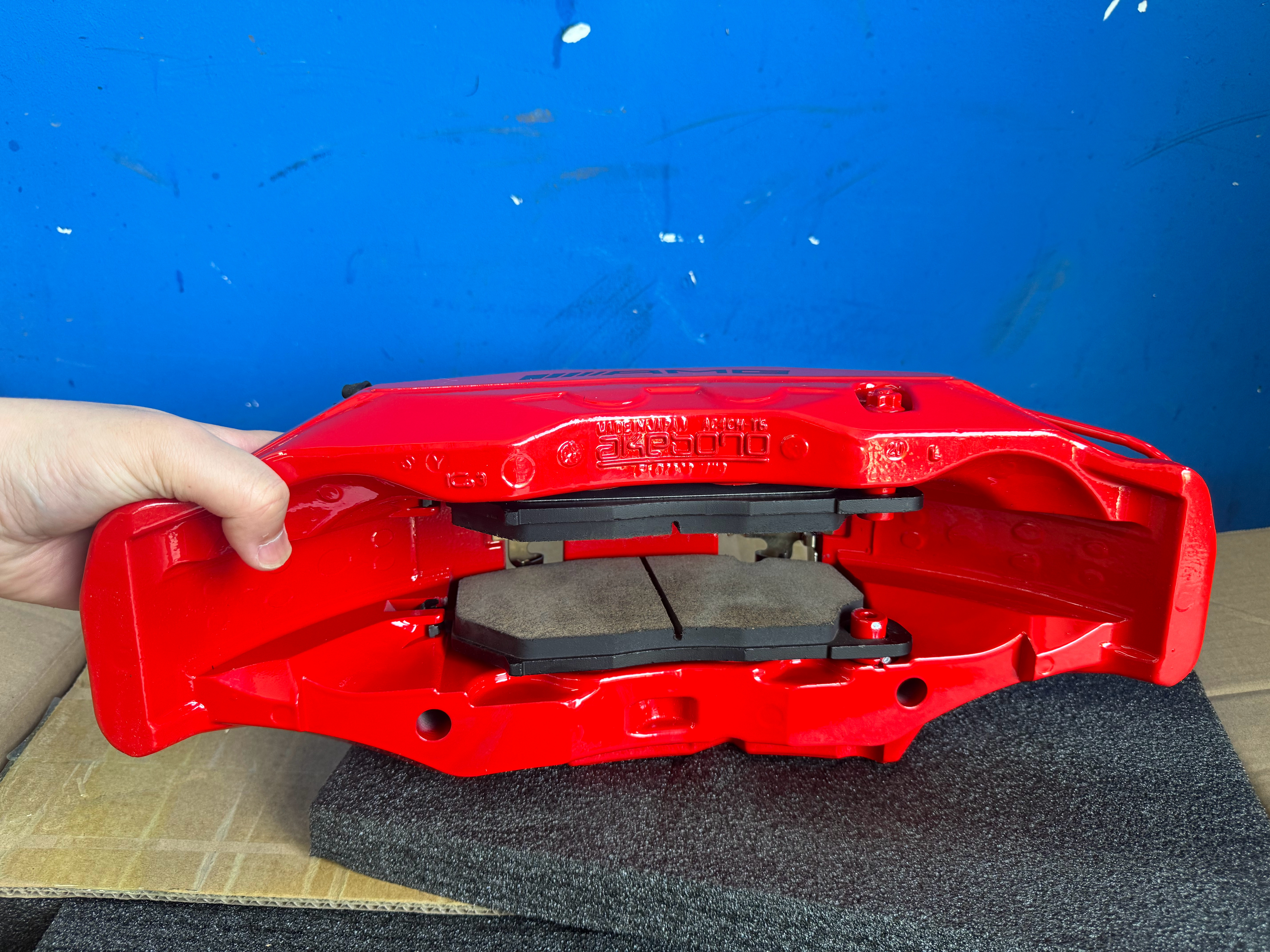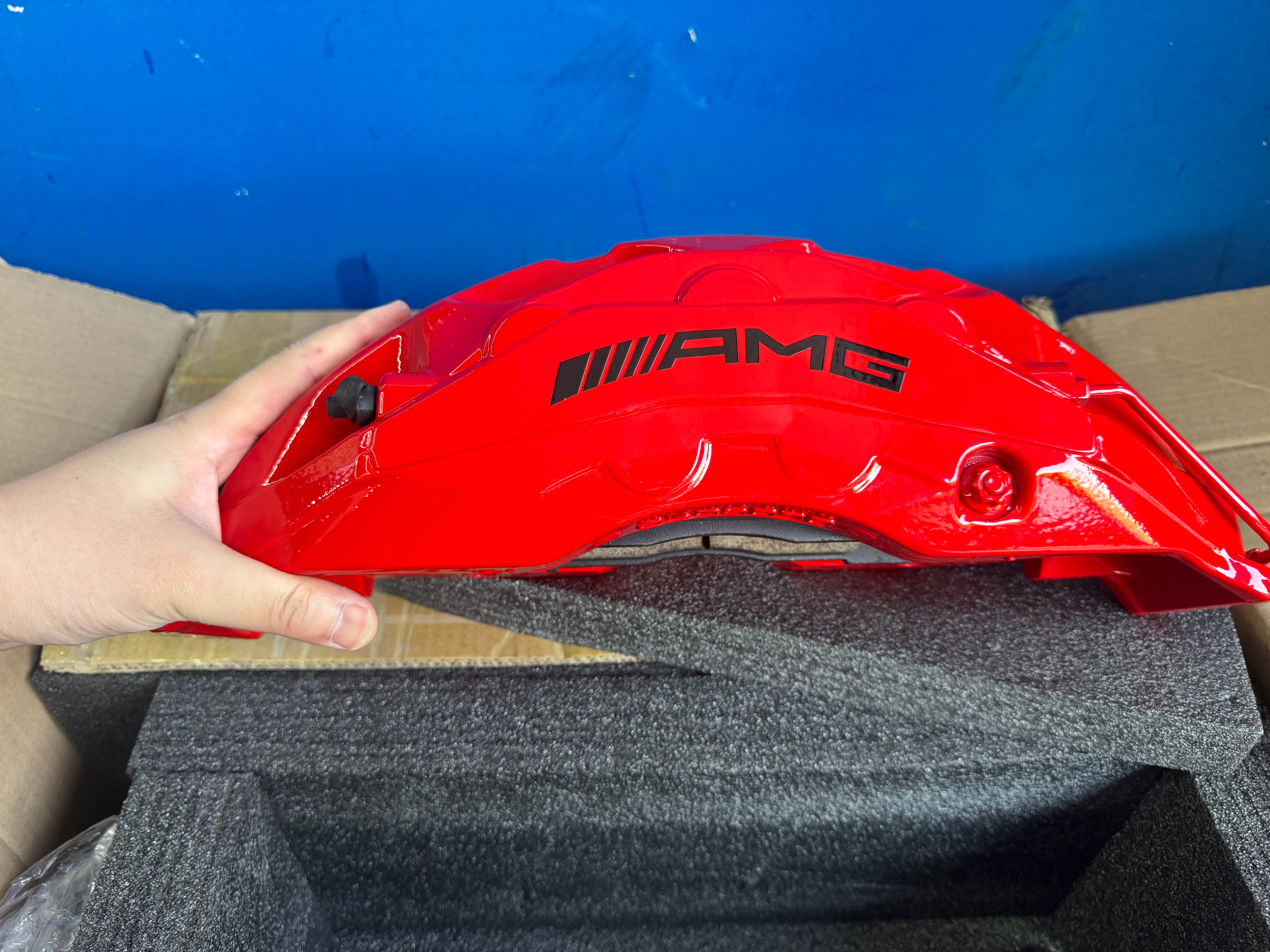 AMG刹车卡钳,就这刹车片的尺寸 也不是一般的车型能有的