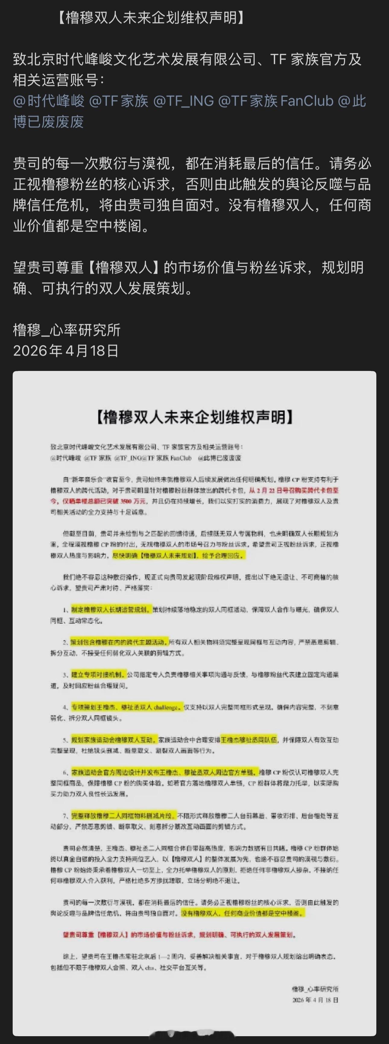 橹穆cp粉维权声明七问时代峰峻明确橹穆双人的规划,希望时代峰峻重视‼️橹穆cp粉维权声明时代峰峻明确橹穆双人规划