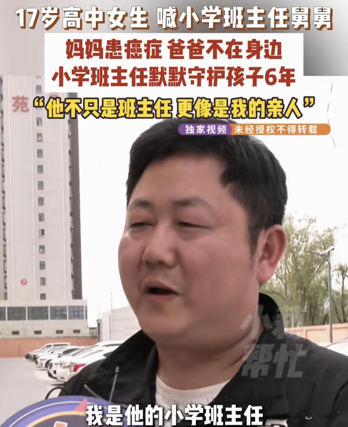 一声舅舅,六年守护!河南这位老师,让我读懂了为人师表最滚烫的模样 今天刷到河南周口这个故事,我一个大男人,看着看着鼻子就酸了。 什么叫一日为师,终身为父? 什么叫不是亲人,胜似亲人? 这位叫魏巍的小学班主任,用整整六年的时光,给了我们最动人的答案。 故事的主角,是17岁的高二女孩王恩惠。 她从小父母离异,跟着妈妈相依为命。 可命运偏要给这个本就艰难的家庭,再添一道重击——妈妈被查出了癌症,需要长期治疗,家里的天,一下子塌了。 而本该撑起这个家的父亲,从头到尾,都没有露过一面。 就在这个女孩最无助、最黑暗的时候,她的小学班主任魏巍,站了出来。 从小学五年级得知孩子的家境开始,这份帮扶,就再也没停过。 这一帮,就是整整六年,从小学到高中,贯穿了孩子最关键的成长岁月。 他做的事,没有惊天动地,却件件暖到了骨子里。 他会给孩子塞生活费,买学习用品和生活用品,认真地告诉她“别人吃到的你也能吃到”; 他会在孩子学业遇到坎的时候,耐着性子指导鼓励; 他会在孩子妈妈治病最艰难的时候,默默搭把手,帮这个风雨飘摇的家,扛过一道又一道难关。 六年的朝夕相伴,六年的默默守护,孩子对他的称呼,也从“魏老师”,变成了“舅舅”。 这一声舅舅,哪里是随口的称呼啊。 这是一个孩子,把一个人完完全全放进了心里,当成了自己最亲的亲人。 女孩对着镜头红着眼说:“他不只是我的班主任,更像是我的亲人。我妈妈是我唯一的亲人,他也是。” 女孩的妈妈更是哽咽着说:“我们非亲非故,他能这样帮我们,比亲兄弟姐妹都好。” 可魏巍自己呢? 面对镜头,他只是憨厚地笑着,说自己“只是做了一件普通的小事”。 他最大的心愿,朴素得让人心疼:就是想让这个孩子,能去看看外面的世界是什么样的。 看到这里,我真的破防了。 我们总说,老师是蜡烛,是园丁。 可魏巍老师,他是真的把学生,当成了自己的孩子。 他本可以只做好本职工作,上完课就转身离开,孩子的家境变故,本不是他必须承担的责任。 可他偏偏选择了伸出手,用自己的光,去照亮一个孩子原本灰暗的人生。 这份善良,没有血缘的捆绑,没有利益的算计,纯粹得像一汪清泉,滚烫得像一团烈火。 什么是真正的为人师表? 从来不是教出了多少高分的学生,而是用自己的一言一行,给孩子的心里种下了爱与善良的种子。 他不仅教给了孩子知识,更给了孩子面对苦难的底气,和好好生活的勇气。 这一声舅舅,是孩子最真诚的感恩; 这六年守护,是为人师者最动人的担当。 愿这个努力的女孩,能如愿考上心仪的大学,去看看魏老师想让她看到的广阔世界; 也愿这位善良的老师,一生平安,万事顺遂。 河南班主任守护患癌妈妈女孩6年 一声舅舅一生责任