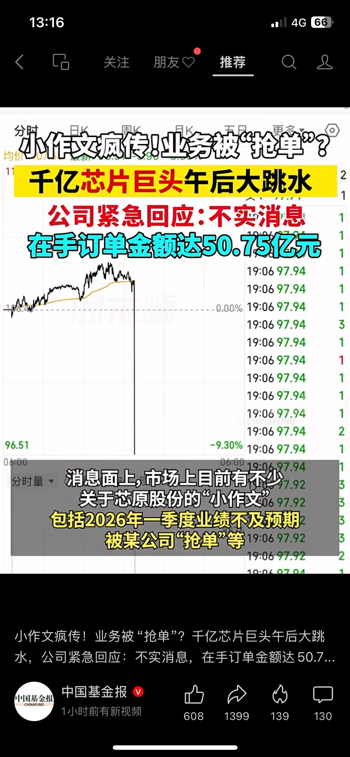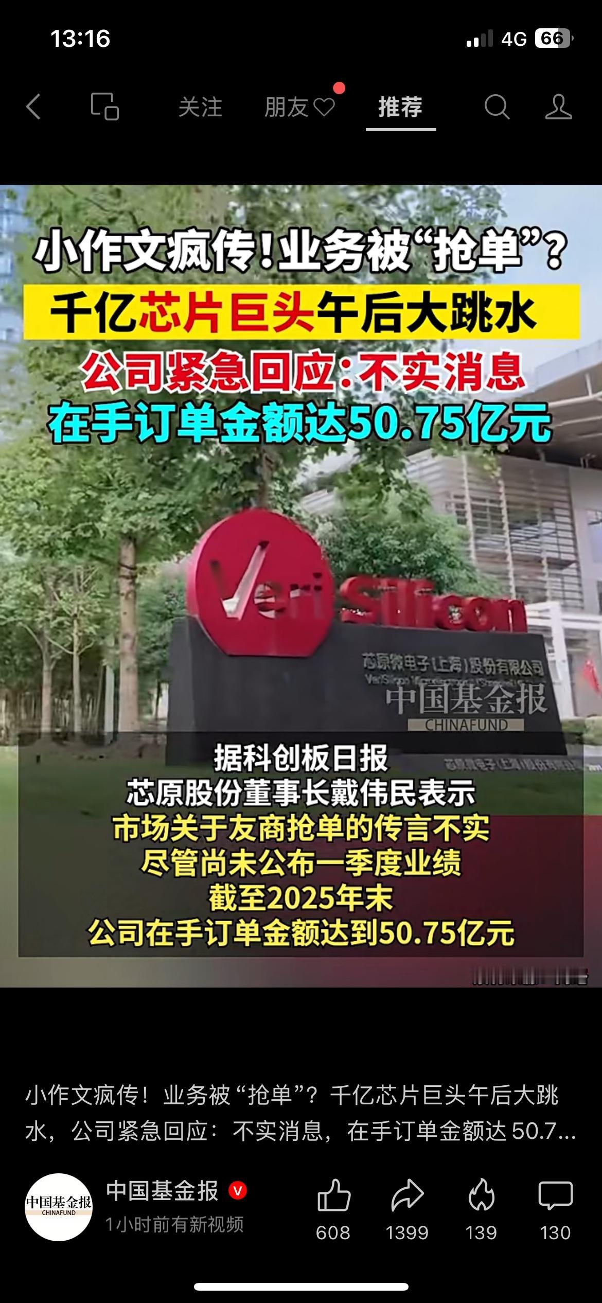 千亿芯片巨头午后跳水,网传被抢单?公司紧急回应不实 千亿市值芯片公司芯原股份午后突然大幅下跌,市场上各种被抢单、业绩不及预期的消息满天飞。公司很快发布澄清,相关传闻均不属实,截至2025年末,公司在手订单仍有50多亿元。市场消息真假难辨,大家还是要以官方公告为准。 芯原股份 芯片股 A股行情