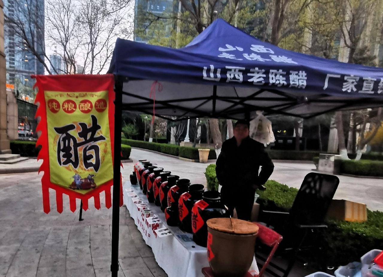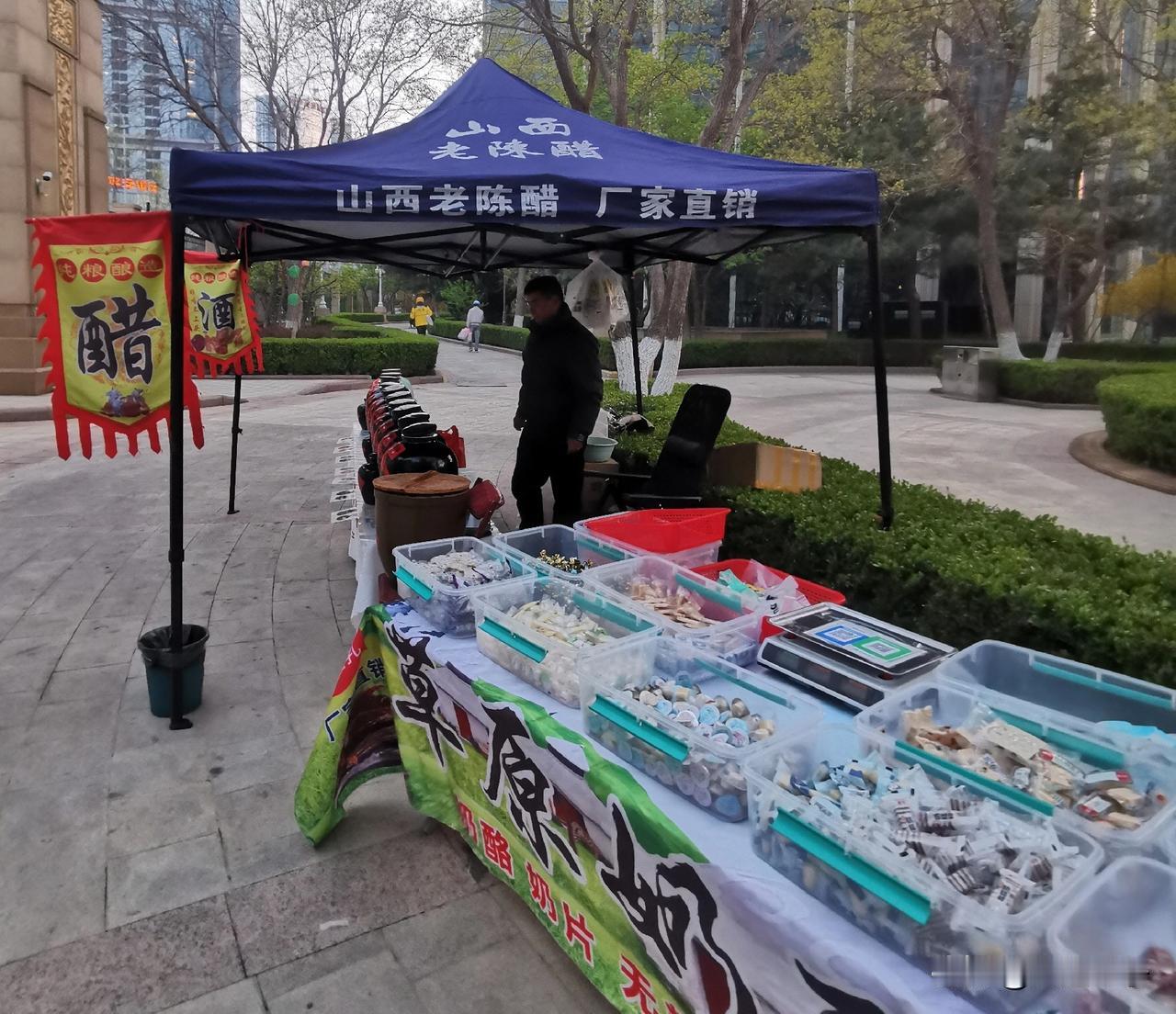 还是这家,又来院里推销山西老陈醋了! 去年的4月19号,也是这家陈醋厂,派员到我们院里进行陈醋推销,我还给他们拍一个视频(图三)。 这一年当中,他们走进大连的多个小区和农贸市场,实地腿照,他们的哪一些产品受欢迎。 他们的老陈醋有20块钱一斤,40块钱一斤,功能性的能贵一些,苹果醋,桑葚醋等是60元一斤,最贵的黄精醋是120元一斤…… 山西老陈醋是出了名的,是非物质文化遗产。 去年,我还买过他家的老陈醋,心存芥蒂,怕是假冒产品,人家敢再一次来,那么他的产品一定是真的,不是假的。 现在生意确实不好做,务实更重要,他们走街串巷,脚踏实际的推销自己的产品,这种精神真值得我们学习。 晒图笔记大赛