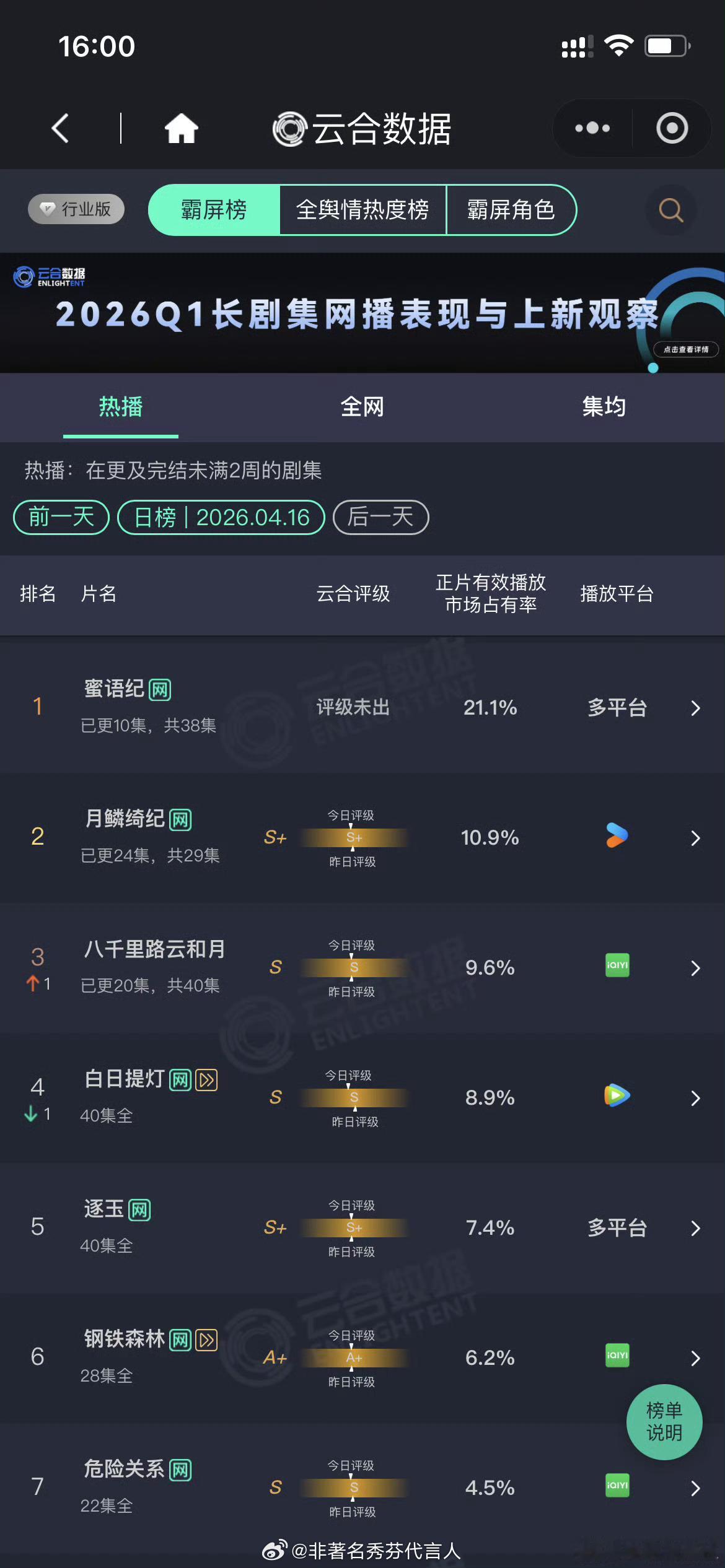 蜜语纪云合21.1%每次一说就啥下沉市场爱,观众还分三六九等的样子,其实蜜语纪就是好看观众爱看而已