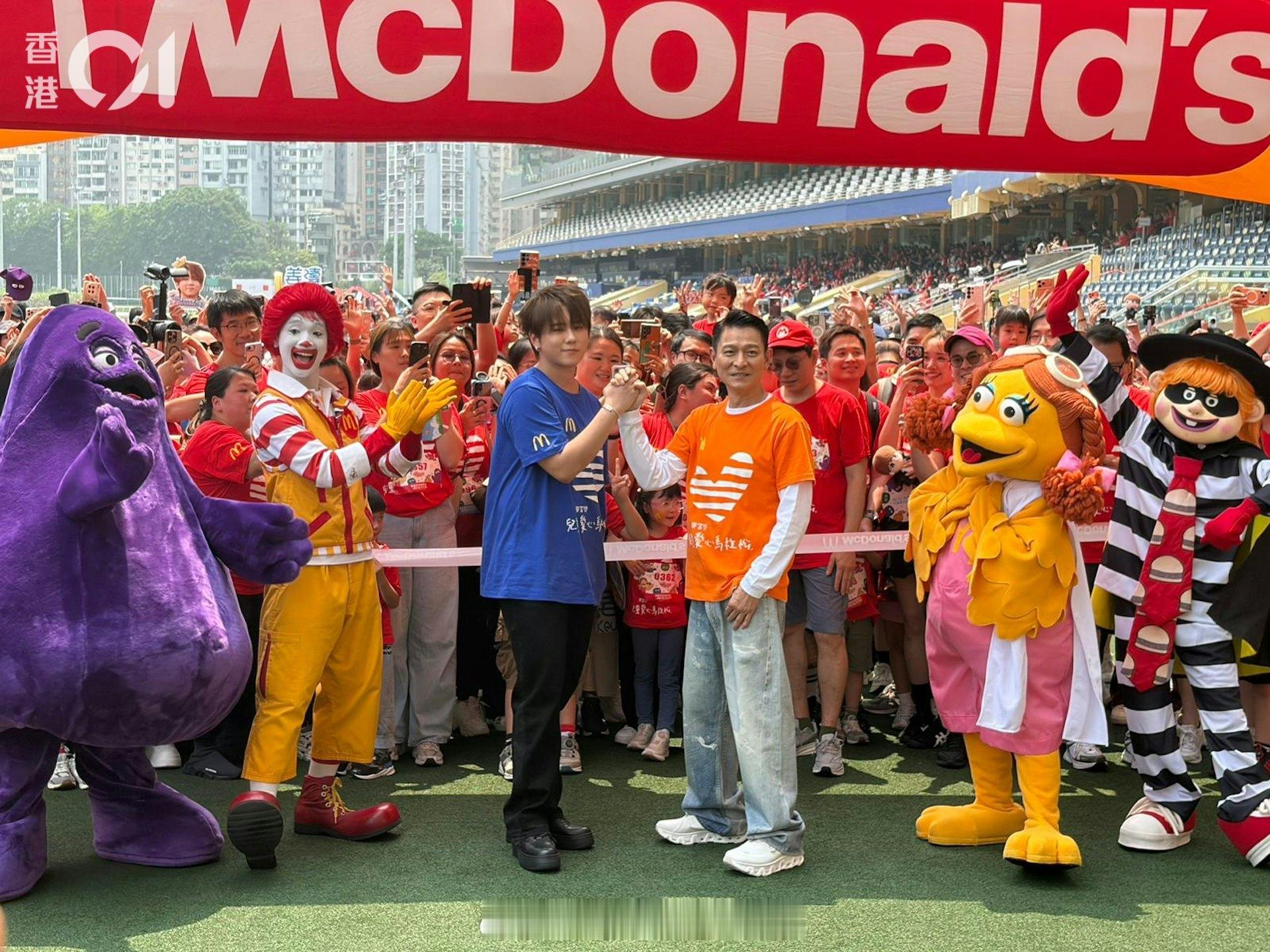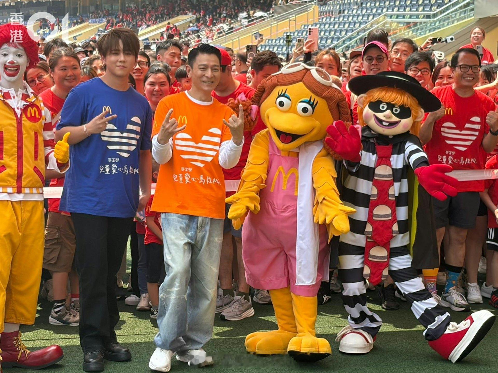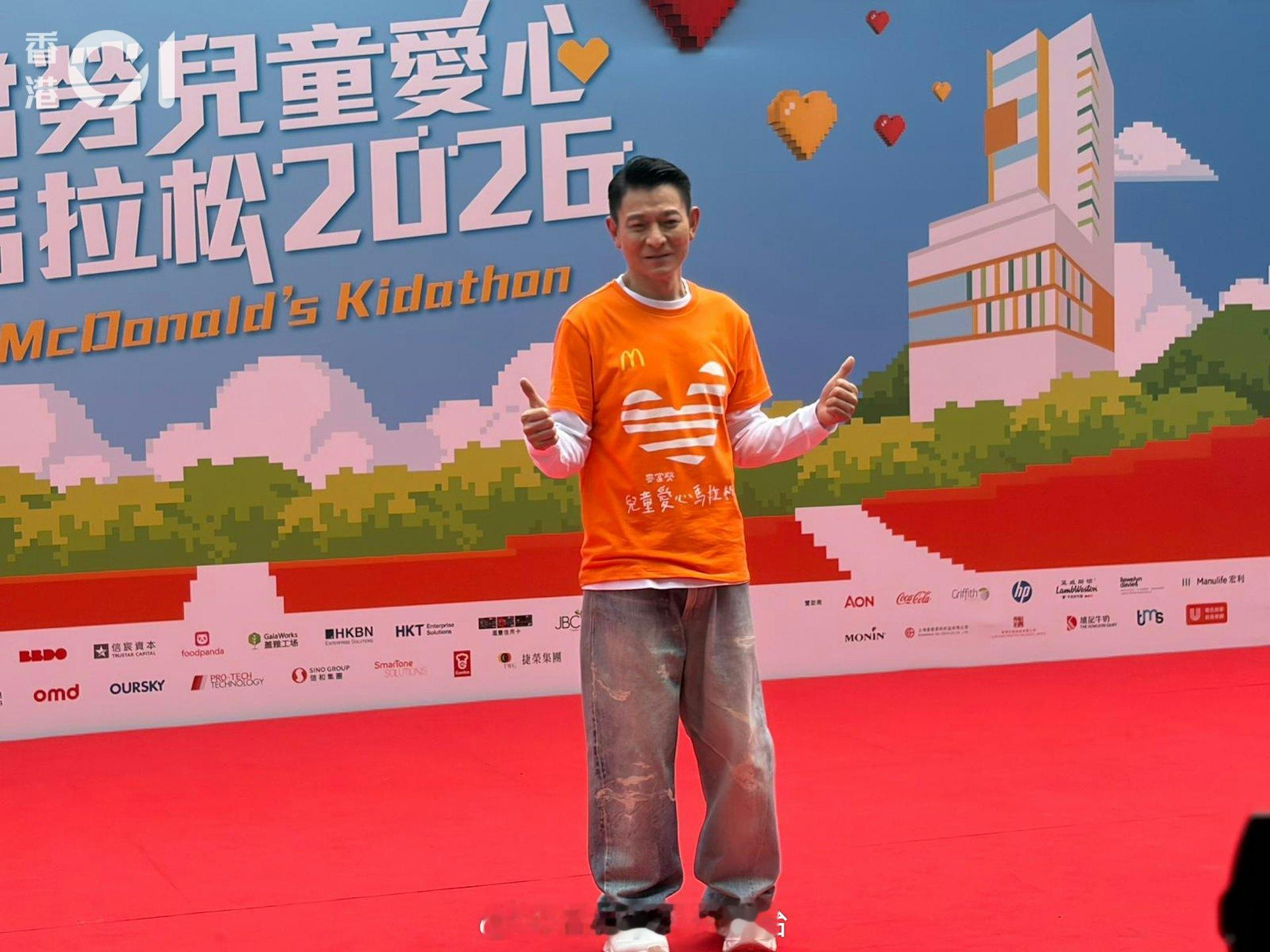 刘德华今日以香港麦当劳叔叔之家星级监护人身份,出席麦当劳儿童爱心马拉松2026活动,与慈善大使姜涛一同为慈善出力。两人在台上闲聊,更即场合唱两句《没有翅膀的天使》,令粉丝十分惊喜。二人亦主持起步礼,现场气氛热烈。