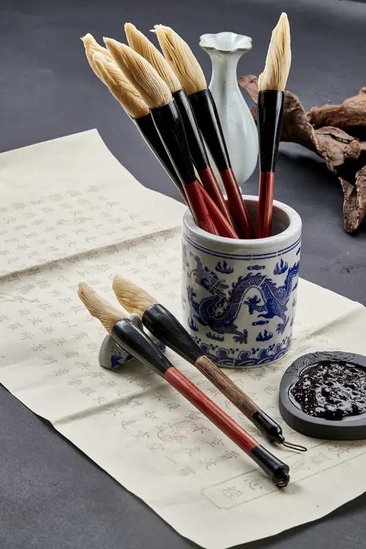 这样的書写与行筆方法,让这支毛笔所写的字体与笔画,具有硬笔书法的风范来,整幅作品写出了与其它的书法作品不一样的艺术风格和气息来,而其中的笔画少有的肥厚庄重之感,更是兼具潇洒而又有别具一格的特点来!