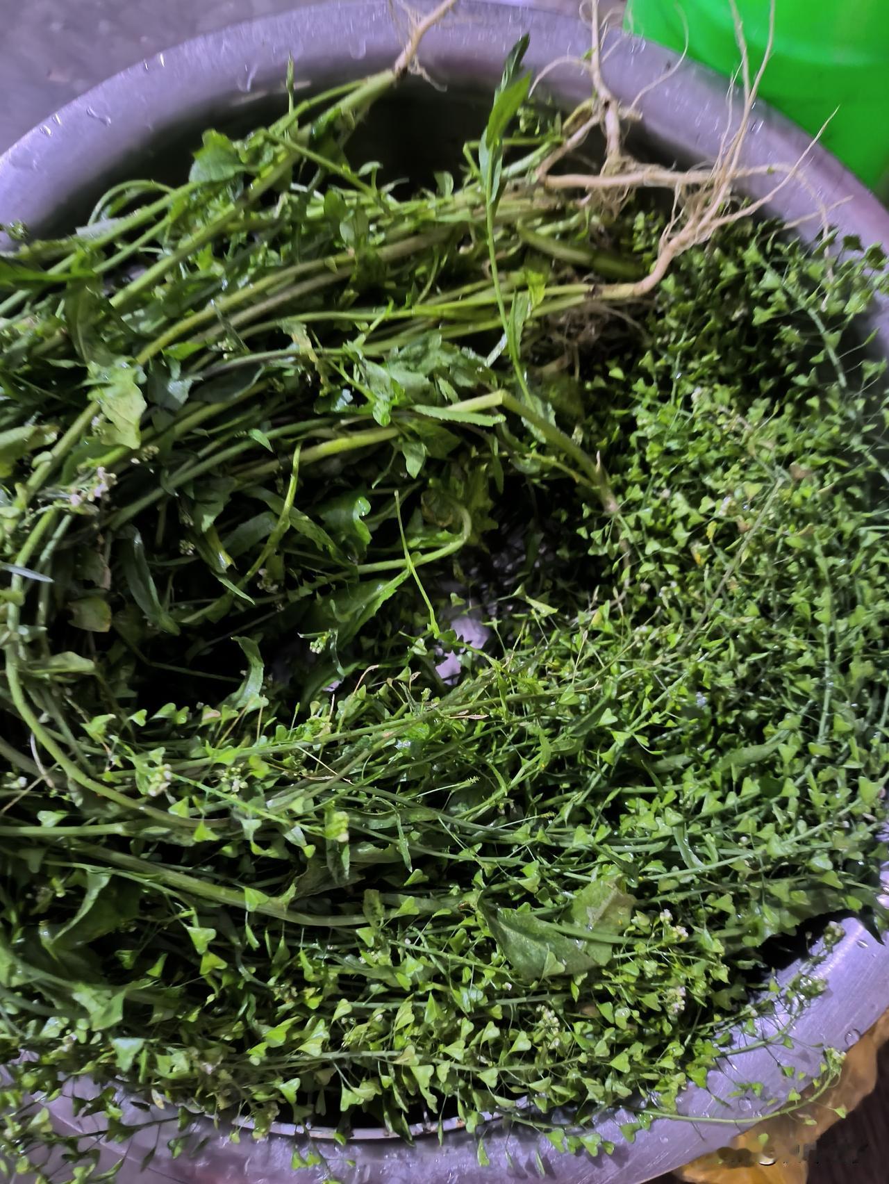 今天周末,闲着无事,就去找老朋友阿红玩。 阿红既是我的老乡,也曾经是我的同事,我们在一起上班好几年。下午3点。阿红就打过来电话,说,她已经在路口等我了,让我和她一起去郊外玩玩,说现在郊外的空气可好了。 我觉得下午3点天气还很热呢,本不想出去,可阿红在路口等我。 见了阿红,她就说咱们去郊外吧,明天就三月三了,咱们去郊外挖点野地菜,俗话说的好: 三月三,地菜赛仙丹。意思就是说三月三这天挖点野地菜,配着鸡蛋煮,比仙丹还有好处呢。 地菜早就老了,都开花了。阿红说没事儿。一样可以煮鸡蛋吃。 我们骑车到了郊外。田里的小麦已经凑齐了,这么快呀。可是麦田里一颗地菜都找不到。阿红去问路边扫地的大姐哪里有地菜? 扫地的大姐说,现在麦田的都打了好几遍药了,哪有地菜?怪不得呢,我们走了好远,连一棵地菜都没有。 我想起来我家附近有一块菜地,菜地里不打药。那里应该有地菜。 我和阿红骑车到了那里,那片菜地里果然有很多地菜,不过已经长老了。 我们两个拔了一袋子地菜。阿红说这种地铁要连根一起煮水。具体的方法是把地菜连根洗净,放到锅里,上面再放几个鸡蛋,加几颗红枣,再加点冰糖,再放几片生姜。水煮开以后,感觉鸡蛋已经定型了,再把鸡蛋剥壳。鸡蛋剥壳以后再放进去煮20分钟,然后连汤带鸡蛋一起吃。她说,每年的三月三她都会挖地菜煮鸡蛋。 下图是我挖的地菜,已经洗干净了。我准备明天早上按照她说的法子做,可是阿红说,她今天晚上就煮着吃。 明天就三月三了,大家都吃过野地菜煮鸡蛋吗?