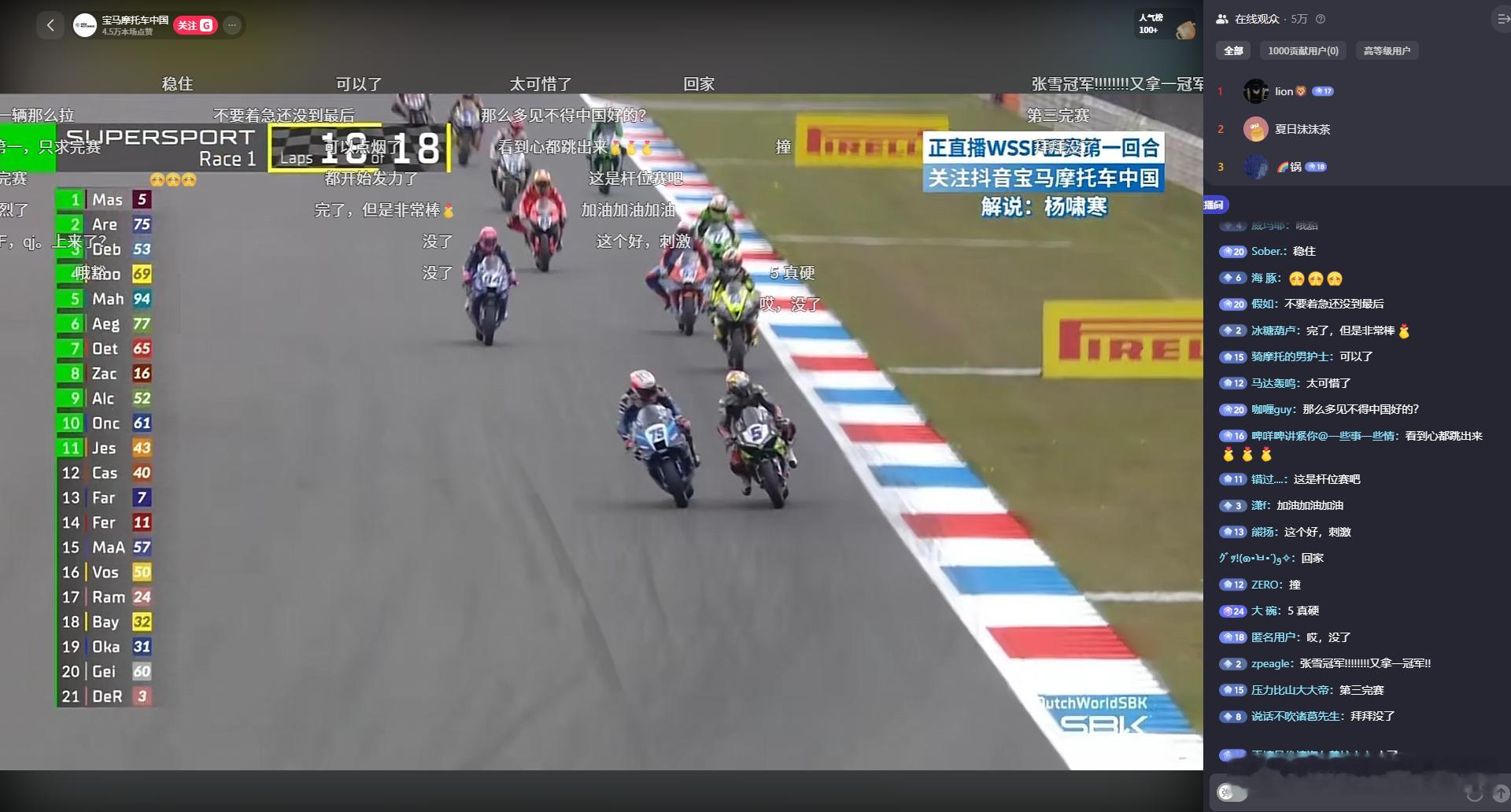 刷到WSBK荷兰站的直播,张雪机车又是在第一,今天估计又拿下了