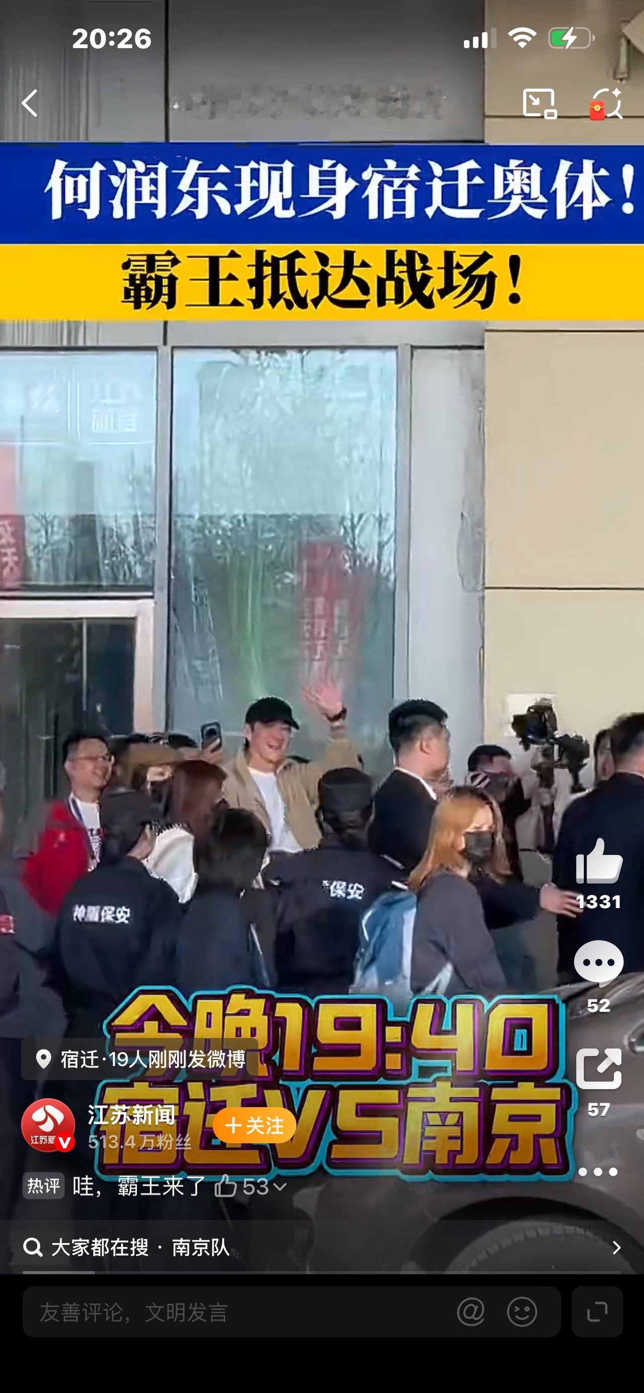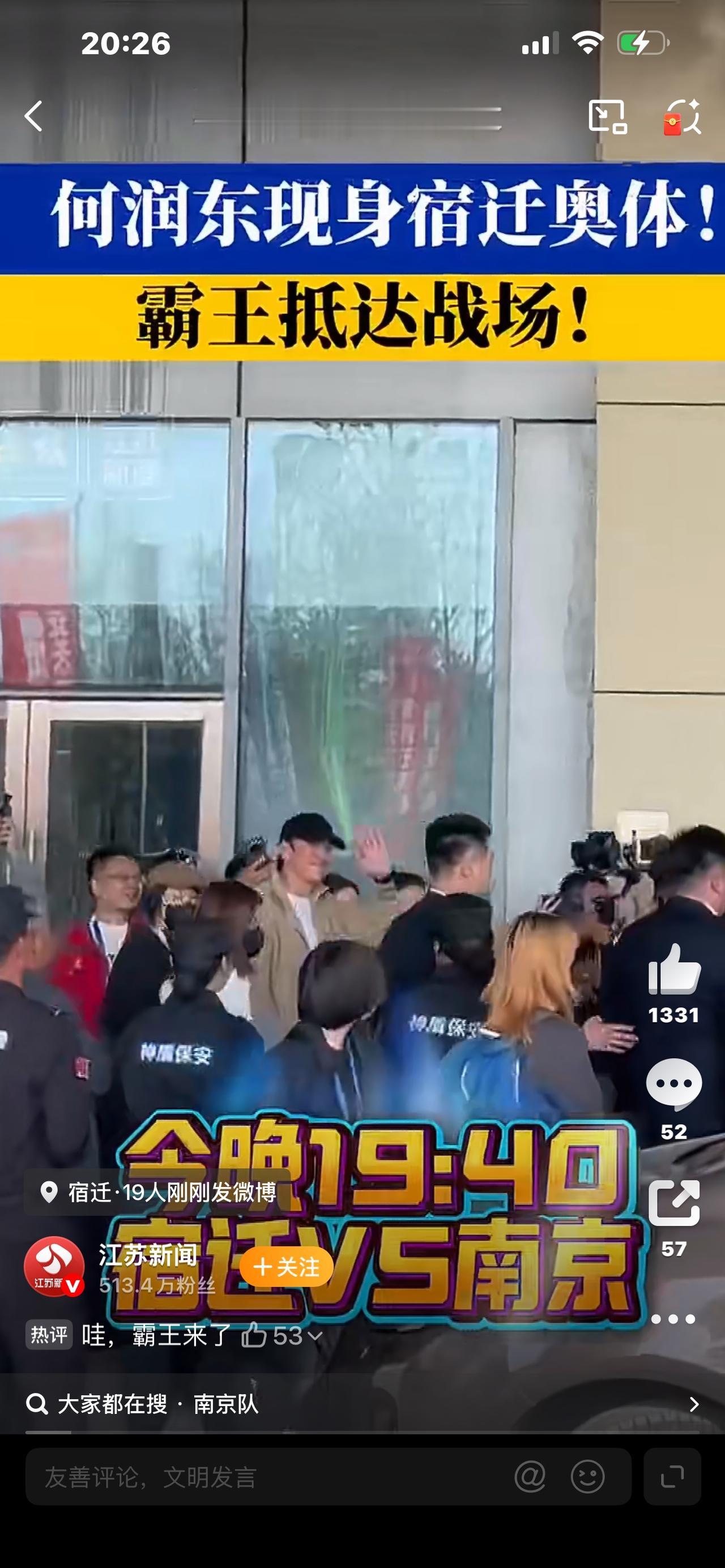 何润东现身宿迁奥体!霸王归乡,全场高呼,这波联动燃炸全网! 谁能想到!《楚汉传奇》里的“楚霸王”何润东,真的穿越回了故乡宿迁!一身战甲、驾着战车空降奥体中心,瞬间点燃数万人热情,这一幕,直接封神! 🔥 全场沸腾!霸王归来,气势拉满 4月18日,江苏足球联赛(苏超)宿迁主场开战!何润东以经典项羽造型硬核亮相: • 战袍复刻:身穿20斤重的原版霸王战甲,非遗团队手工打造,细节拉满。 • 霸气登场:乘仿古战车绕场,手持长戟,一声“我项羽回来了!”“宿迁男儿,敢不敢拼!”,全场齐声呼应“力拔山兮气盖世!”。 🔄 梦幻联动!从网友玩梗到官方封神 谁也没料到,这场世纪同框,竟源于网友的一句玩笑! • 缘起玩梗:因“粉底液将军”对比,何润东版项羽翻红,网友喊话:“请霸王回家助阵!”。 • 官方听劝:宿迁文旅火速回应“静候霸王”,真把何润东请来了! • 文体融合:把历史IP、明星效应、足球赛事完美结合,这波操作,堪称文旅营销教科书! ✨ 共鸣破防!是情怀,更是家乡的底气 这不仅仅是一场活动,更是情怀与归属的碰撞。 • 对何润东:14年后再披战甲,以“项羽”之名回到项王故里,一句“回家了”,道尽感慨。 • 对宿迁人:家门口的球赛,迎来了最霸气的“家乡代言人”,自豪感爆棚。 • 对所有人:我们爱的不只是霸王的霸气,更是那份不忘初心、热血难凉的精神。 这才是文化自信的样子!让历史活起来,让情怀落地,为家乡、为英雄、为这份热血与热爱,狠狠点赞!宿迁项羽 苏超宿迁 宿迁西楚霸王杯 宿迁霸王杯 苏超项羽 项羽故地 苏超徐州队战袍