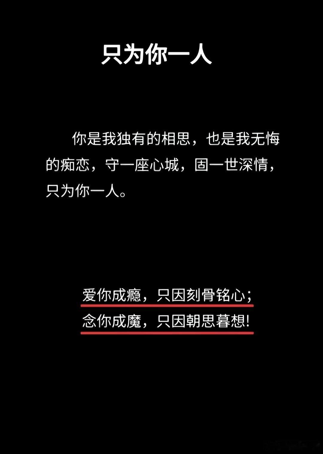 情感 只为你一人,你是我独有的相思,也是我无悔的痴恋,守一座心城,固一世深情,只为你一人。爱你成瘾,只因刻骨铭心,念你成魔,只因朝思暮想!