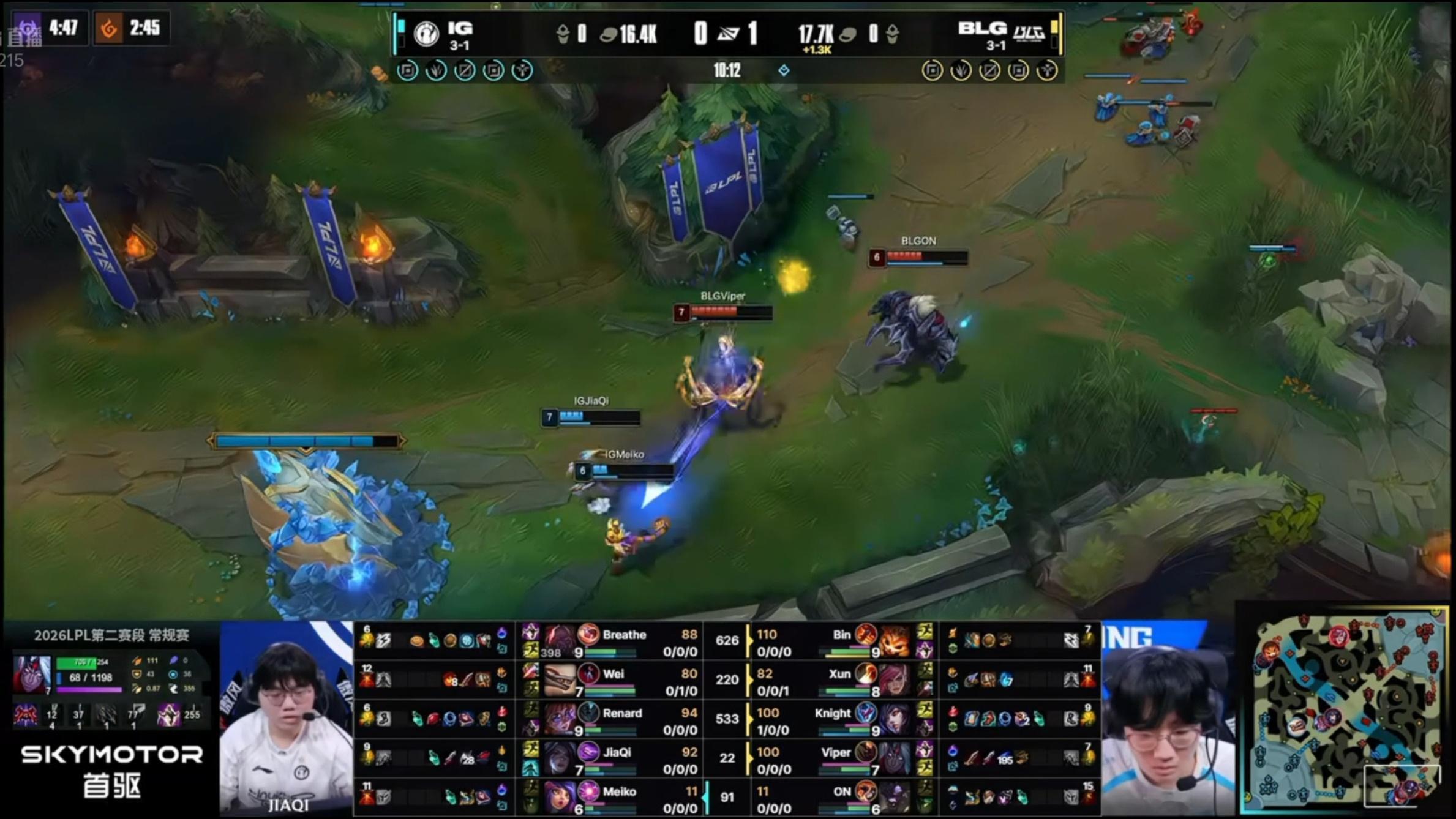 woc老公Viper向前闪现单杀iG下路组Jiaqi和Meiko。viper拍了拍meikoViper韦鲁斯好帅2026lpl第二赛段朴到贤viper