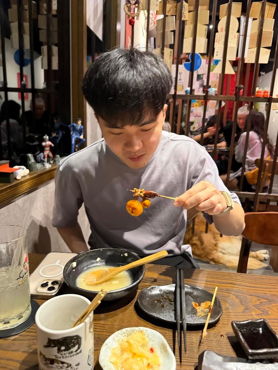王冠宏拍了坐在对面一起吃饭的林昀儒📷(吃的提灯吗上次吃烤肉好像也是穿这件短袖