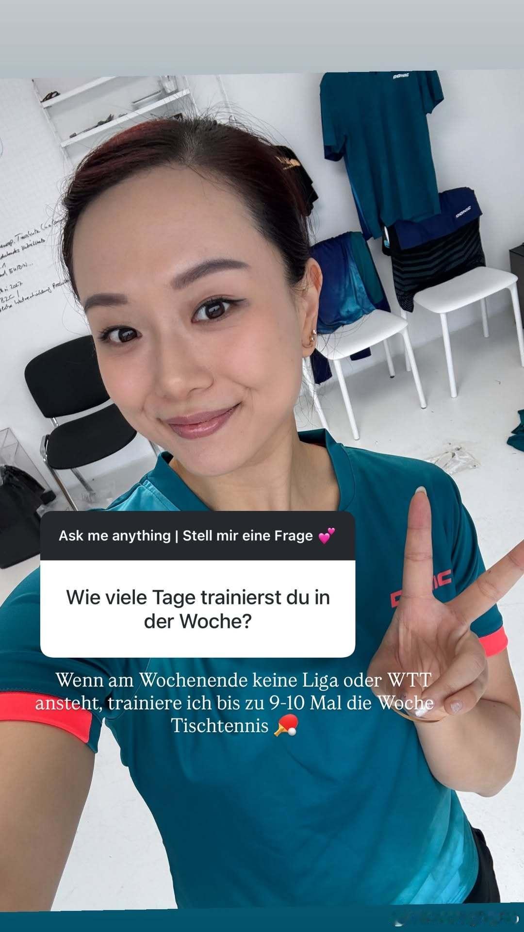 你一周训练几天?如果周末没有联赛或WTT赛事的话,我一周会打乒乓球9-10次 🏓