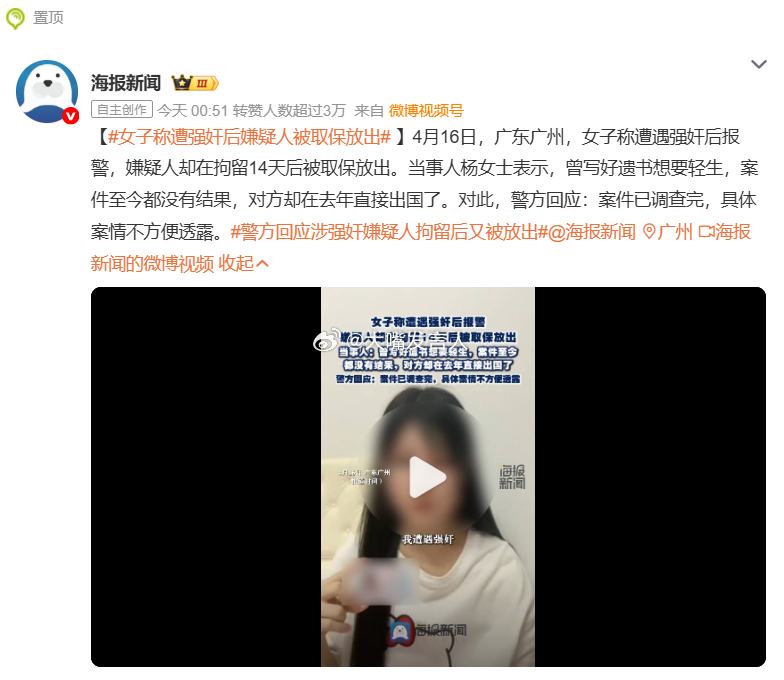 女子称遭强奸后嫌疑人被取保放出 男性嫌疑人被拘了14天,被放出,一年后出国这是,实在找不到报案人所称的强奸证据了吧难道,难道,女性报案人就没有诬陷的嫌疑吗警方回应涉强奸嫌疑人拘留后又被放出, 热点观点
