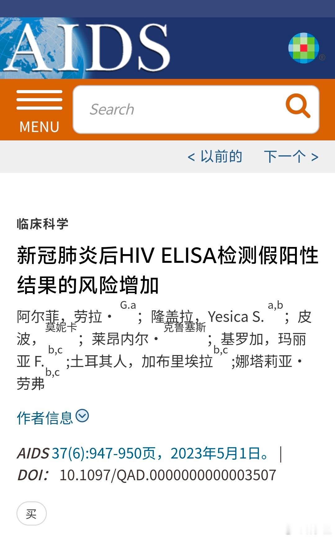✨体内存在新冠刺突蛋白抗体的个体中,hiv假阳性结果的发生率较高。
