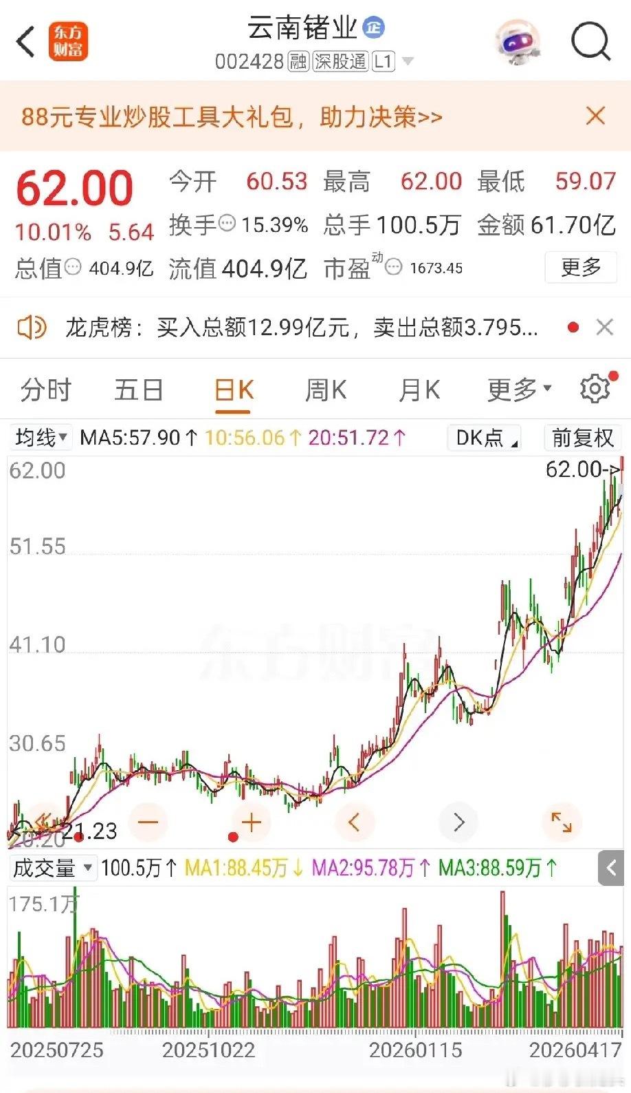 中际旭创做光模块,需要外购光芯片;光芯片核心厂商主要是源杰科技、东山精密、长光华芯;而光芯片生产的关键原材料就是磷化铟,而国内能做磷化铟的主要是北京通美和云南锗业。其中,北京通美是美股AXT旗下子公司,AXT本身处于亏损状态,却一年暴涨60倍,当前市值折合人民币300亿出头。那么单看磷化铟业务,云南锗业就至少值300亿,毕竟子公司鑫耀半导体:华为哈勃持股,锁定53%产能;再叠加商业航天中30万片产能的卫星太阳能电池核心的锗衬底、光纤核心原材料四氯化锗、锗金属涨价等业务,同样能给到300亿估值,再结合目前发展潜力:1.中际旭创、华为疯抢国产磷化铟2.AXT亏损都300亿,云南锗业盈利+国产替代+产能释放3.2026年业绩拐点下,净利从千万级跳至 2-3亿,且2027年磷化铟满产,净利 10亿+。那么合计合理估值600多亿,对应股价100元,属于当前合理水平!股市有风险,入市需谨慎,以上仅供参考,不构成投资建议!