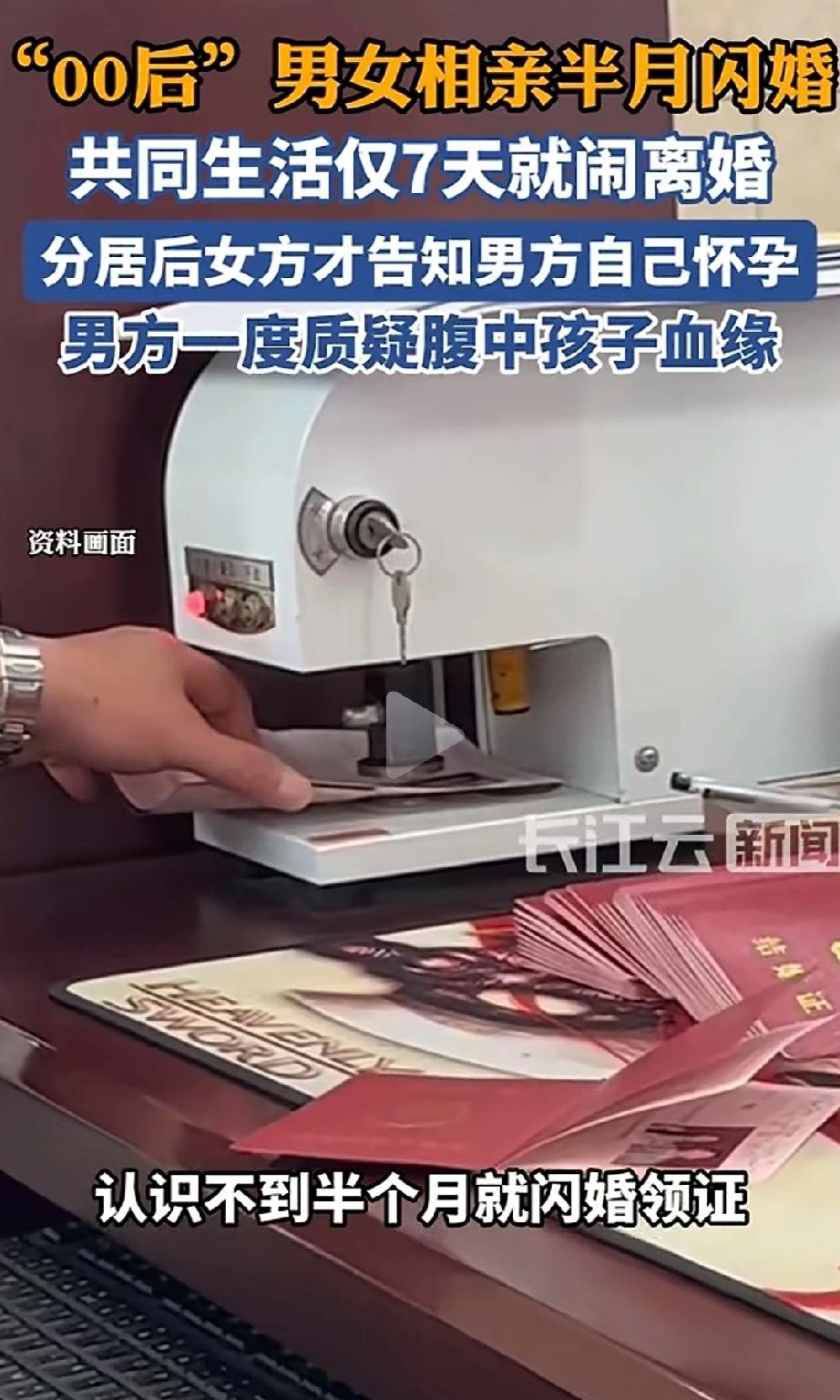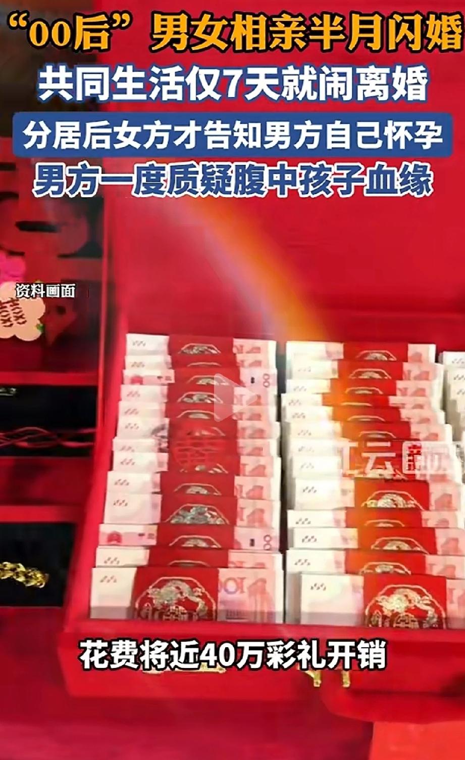 太儿戏了!河南驻马店,一对00后年轻人过年相亲认识,仅半个月就领证结婚,男方家花费近40万彩礼。不成想。婚后两人只共同生活7天,女方就因对男方生理性厌恶回了娘家,随后女方称自己怀孕,男方却质疑孩子的血缘。如今双方拒绝调解,执意离婚, 一对00后夫妻,男方2002年出生,女方2005年出生,今年过年期间相亲认识,不到半个月就领证结婚。 男方家里掏空了半辈子积蓄,前前后后砸了将近40万,彩礼、三金、婚宴酒席,一样不落,风风光光把媳妇娶进了门。 可谁能想到,新婚夫妻在一起仅仅共同生活了7天,女方就说出了让所有人都目瞪口呆的话—— “性格不合,生理性厌恶,不跟你过了!” 男方还在一头雾水的时候,女方直接收拾行李回了娘家,态度强硬到吓人。 更戏剧性的是,女方回到娘家后才告诉男方——自己已经怀孕了。 这本该是修复婚姻的一个机会,可男方非但没有心软,反而当着媒体的面公开质疑:“这孩子到底是不是我的?”一句话,把这段原本就脆弱的婚姻彻底推向了绝路。 女方的控诉也很扎心:“他动不动摔门就走,在村里不管跟谁都说我跑了,生理性厌恶不想再过了。” 男方则委屈地说,自己哄了半个月、认错了半个月,对方就是不回头。两边各执一词,谁也不让谁,目前双方拒绝调解! 一个普通农村家庭,40万意味着什么?那是父母常年在外打工、省吃俭用攒下来的血汗钱,有的甚至还跟亲戚借了外债。 本想着儿子成了家、抱了孙子,这辈子就圆满了,结果婚姻只维持了7天就宣告结束,钱能不能要回来,还是个未知数。 一边是父母掏空家底换来的“速成婚姻”,一边是年轻人连对方脾气性格都没摸清就草率领证,结果短短7天就崩盘。 两个人都才20岁出头,05年出生的姑娘今年才刚满21岁,自己还是个孩子,就要面对婚姻破裂、孩子血缘被质疑的处境。 而男方家庭,为了这场不到半个月的婚姻,搭进去的是父母大半辈子的辛苦钱。 说到底,这哪里是什么婚姻,分明是一场没有赢家的豪赌。赌的是父母的血汗钱,赌的是年轻人的后半辈子,最后谁也落不着好。 婚恋,从来都不该是“效率优先”的速成生意。没有感情基础的婚姻,就像建在沙滩上的房子,潮水一冲就塌了。 农村父母盼着子女成家的心情可以理解,但如果只看重“结了婚”这个结果,却忽略了婚后能不能过下去这个根本问题,那“催婚”就变成了“催债”。 40万彩礼也好,7天离婚也罢,表面上看是两个年轻人的任性,深层次里,是农村婚恋焦虑、天价彩礼陋习、闪婚闪离乱象的集中爆发。 00后男女相亲半月闪婚 7天就闹离婚