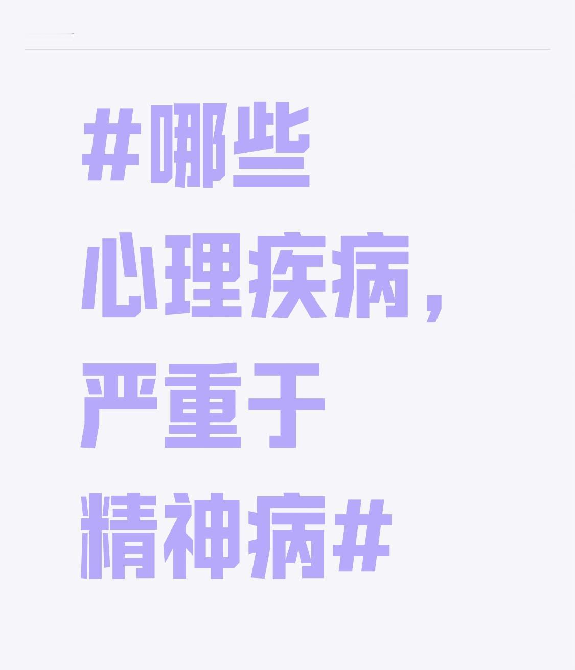 很多人觉得精神病就已经很严重了,但有些心理疾病同样不容小觑。 像偏执型人格障碍,患者对他人普遍不信任,把别人动机都往坏处想,有被害妄想,还拒绝批评,可能有攻击行为。反社会型人格障碍患者漠视他人权利,缺乏悔恨感,冲动且不负责任,常有违法犯罪史。边缘型人格障碍情绪不稳定,自我形象混乱,人际关系紧张,还有自残或自杀倾向。 抑郁症也很可怕,严重时患者记忆力下降、言语减少,还会反复有自杀观念。神经性厌食症患者拒绝进食,会导致内分泌紊乱、营养不良,甚至危及生命。这些心理疾病,严重程度可不亚于精神病。