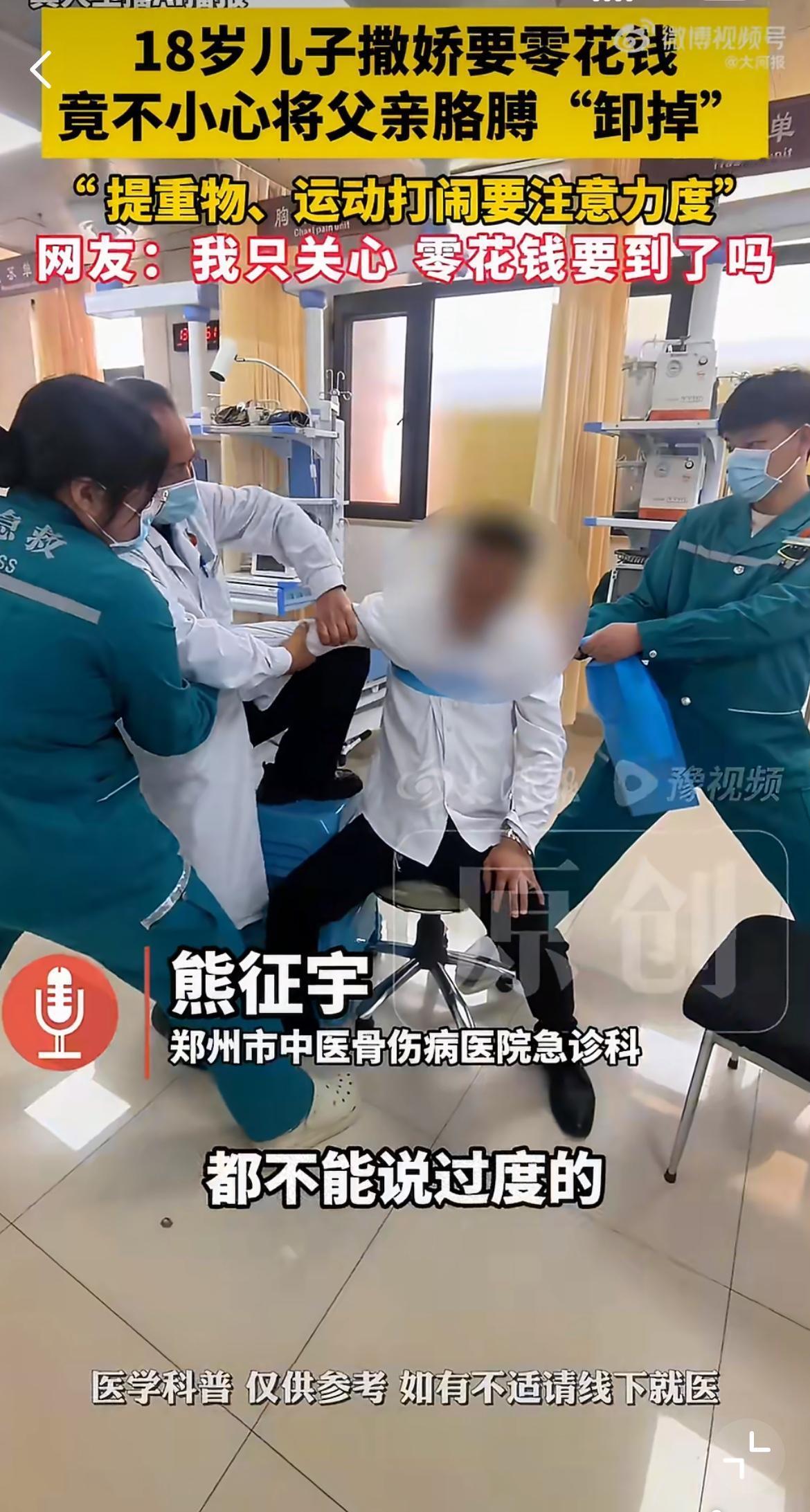 “真是好大儿!”18岁1米8的大小伙子找爸爸要零花钱,拽着胳膊撒娇晃了两下,居然直接把爸爸肩膀拽脱臼了!送到医院疼得脸都白了,有人说是撒娇没轻没重,还有人说这爹身子也太虚了? 河南郑州市中医骨伤病医院急诊科,前不久接诊了一名肩膀脱臼的男性患者,送他来的是他18岁的小儿子,患者受伤的原因居然是被儿子撒娇拽胳膊的时候不小心“卸掉”的。 这名18岁的小儿子在家一直比较受宠,身高长到了一米八,体重有160斤,目前已经没有在上学,最近刚交了女朋友,当天想找爸爸要点零花钱。 他想像小时候一样拽着爸爸的胳膊撒娇,没注意自己力气比小时候大了不少,拉着胳膊晃了没两下,爸爸就突然疼得动不了了,这才发现胳膊居然被拽得脱臼了。 送到医院的时候,患者肩膀疼得特别厉害,胳膊完全抬不起来,医生检查之后确认是肩关节脱位,当场给做了手法复位,之后休养一段时间就能恢复正常。 医生提醒大家,肩关节是我们身上活动范围最大的关节,本身关节盂比较浅,关节囊也相对松弛,要是突然受到牵拉或者外力撞击,很容易出现脱位的情况,日常不管是锻炼还是和家人朋友打闹,都不要过度拉伸关节,避免出现类似的受伤情况。 要是不小心出现了脱位的情况,千万别自己硬掰着往回复位,得第一时间去医院找专业的医生处理,要是复位不当很容易留下习惯性脱位的后遗症,之后稍微动点大力气就可能再次脱臼,反而会影响正常生活。 不少网友调侃说:这哪是撒娇,这是“武力讨要”零花钱,下次想要钱估计爸爸直接就掏了,根本不敢等儿子动手。 也有不少人说:自己家里也有半大的孩子,总觉得自己还是小孩,没意识到力气已经变大了,打闹的时候经常没轻没重,看来之后真得多注意。 你身边有这种打闹不小心受伤的趣事吗?欢迎在评论区聊聊你的经历。点赞,转发给家里有孩子的朋友提醒,日常互动多注意才能避免受伤。关注我,每天给你带来更多有意思的民生热点和实用生活常识。可爱多一点,干爽多一点 大众9X预售发布 华境S全球首秀标配华为乾崑 来源:大河报