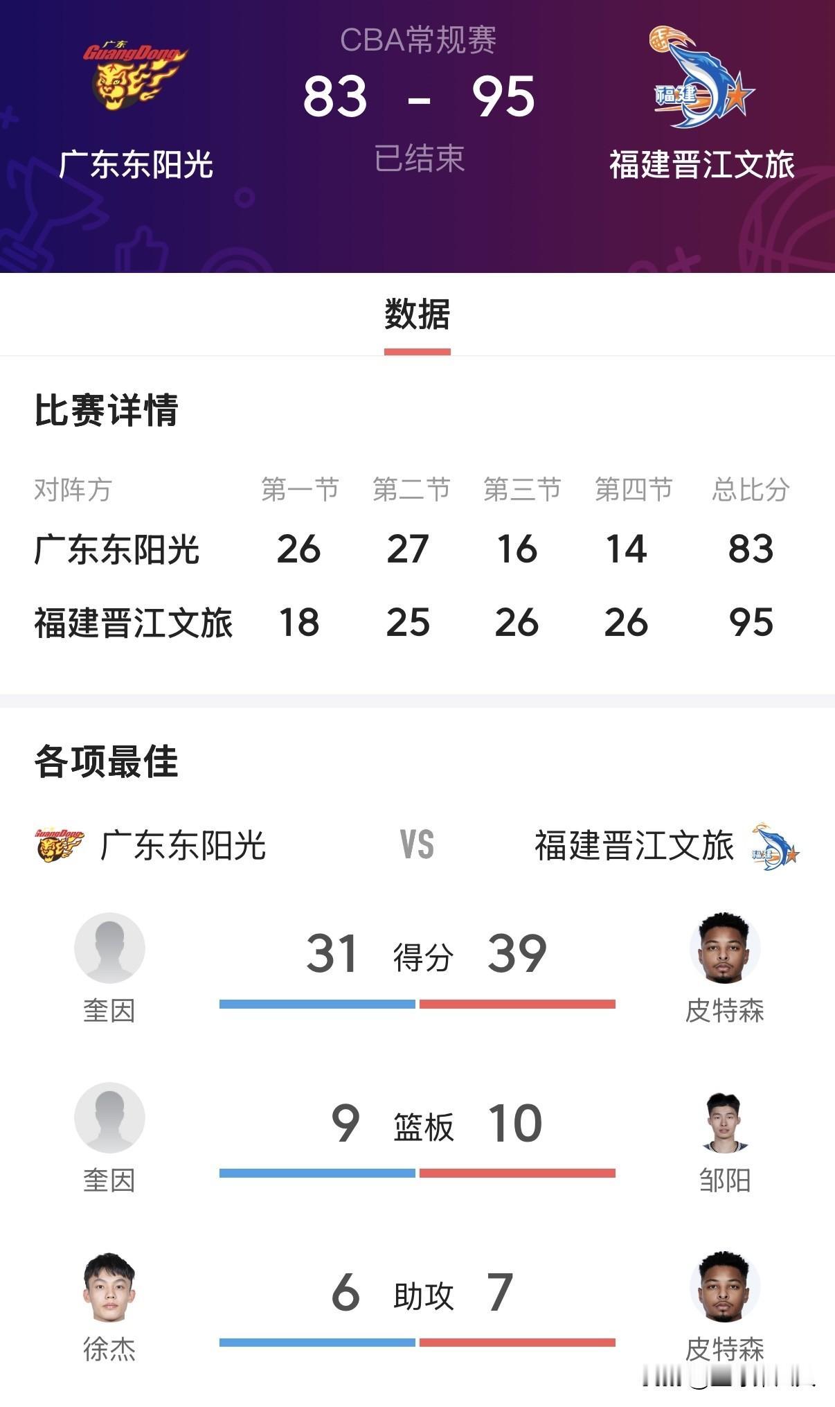 广东惨败福建:主场崩盘遭19分逆转,连胜终结暴露多重隐患 比赛开局,广东队一度占据绝对主动权,首节迅速进入状态,打出高效进攻,以13-4强势开局,奎因与麦考尔联手发力,包揽球队单节大部分得分,首节战罢以26-18领先福建,牢牢掌控比赛节奏。次节初期,广东继续扩大优势,一度将分差拉开到19分,胜利的天平看似完全倾向广东这边。可就在半场收官阶段,球队进攻突然断电,防守端漏洞频出,福建抓住机会打出反击高潮,将分差缩小至10分,广东的领先优势大幅缩水,为后续崩盘埋下伏笔。 易边再战,广东队彻底陷入低迷,攻防两端全面失控,成为比赛的转折点。第三节广东单节仅得16分,福建则轰下26分,凭借一波20-9的攻势完成反超,实现弯道超车。末节决战,广东队依旧未能找回状态,开局再次陷入致命得分荒,福建趁势打出14-3的攻击波,直接将分差拉开到两位数,彻底掌握比赛胜局。尽管广东后续试图发起反扑,但进攻端始终打不开局面,失误不断、投篮频频打铁,最终无力回天,主场吞下惨败苦果。