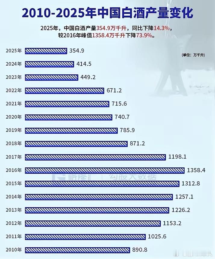 最近茅台利润和营收双降,引起好多惊讶。我一直不看好白酒行业,因为2025去年产量只有十年前的26%,硬生生去掉了四分之三,连零头都没有,而且还在萎缩。一个快速萎缩的行业,是没有前途的。实际上,随着大家科学知识和财富自由度提升,喝白酒,尤其和喝50度以上高度酒,进行互相拼酒已经被厌恶,不需要为利益喝不愿意喝的酒已经是文化。实际上白酒主要不是被品的,而是酒桌拼掉的,随着人们对健康的重视,尤其鄙视拼酒恶习,自然消费就暴跌了。