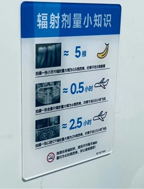 谁懂啊!原来拍牙片的辐射,还没吃5根香蕉多! 口腔医院的科普牌直接把我看懵了:拍小牙片≈吃5根香蕉,全景片≈坐半小时飞机,连抽烟的辐射量都比它高好多!看完瞬间不慌了,原来我们怕的辐射,其实早就藏在日常里了,你还在为拍牙片焦虑吗?