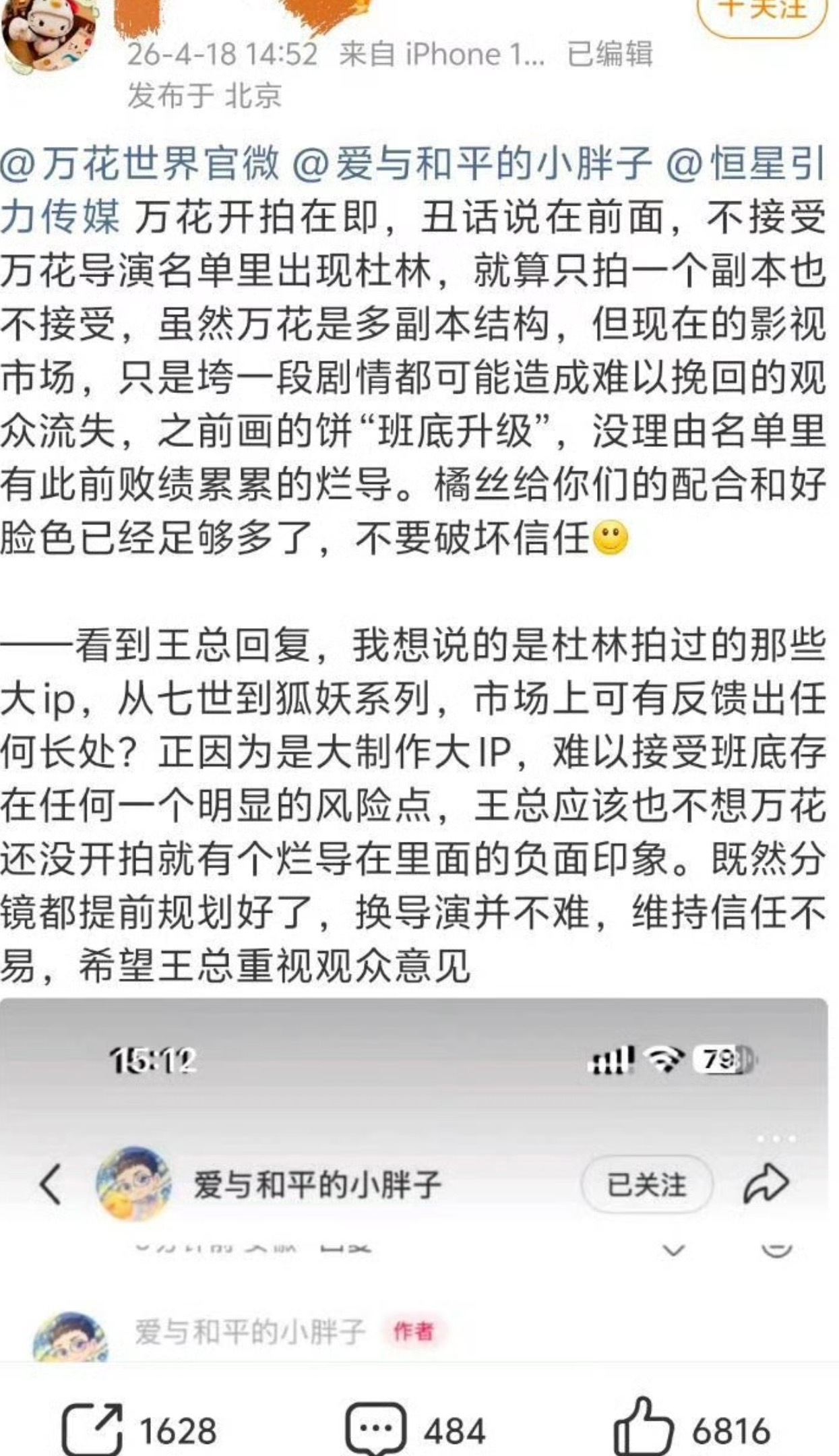 鞠婧祎粉丝在维权万花世界这个确实要一把子支持了杜林导演是狐妖系列的代言我觉得鞠姐粉丝维权很正常