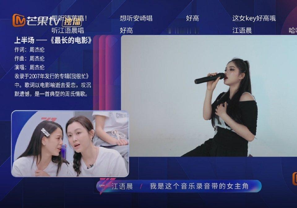 范玮琪贴脸江语晨 范玮琪听《最长的电影》问江语晨:是周先生的歌吗?江语晨:我是这个mv的女主角……看范玮琪表情怎么这么惊讶,原来不知道吗? 乘风2026