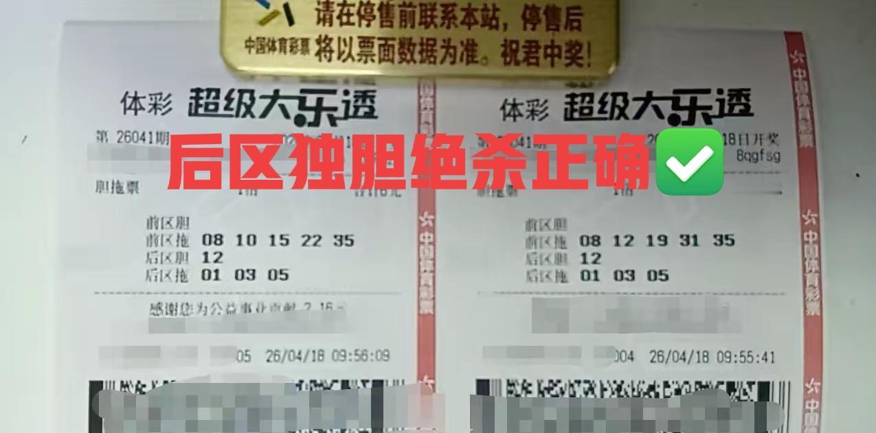 果不其然,后区独胆绝杀正确✅!这几张后区独胆全被杀光,简直太爽了