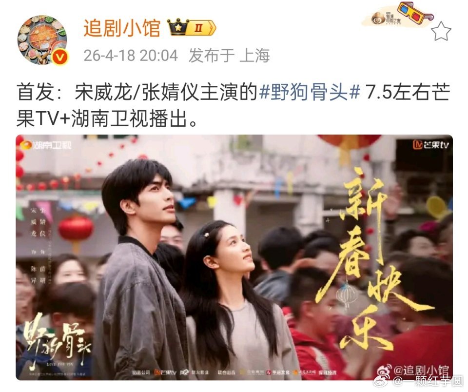 哇塞,宋威龙张婧仪野狗骨头暂定7.5左右🥭TV+湖南卫视播出!!