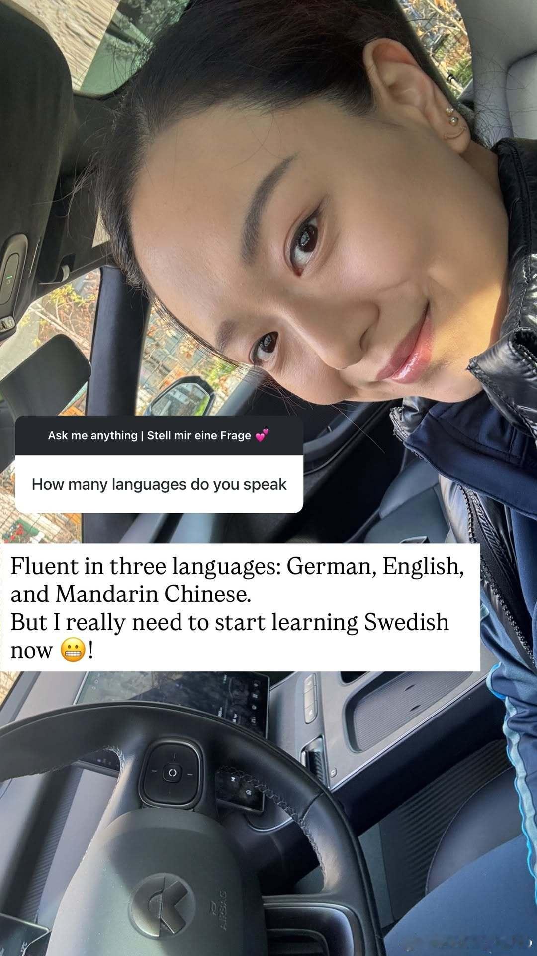 万远提问箱📪你会说几种语言?我能流利使用三种语言:德语、英语和普通话。不过我现在真的得开始学瑞典语了😬!