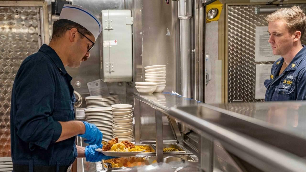 美国海军发布了几张军舰厨房的照片,否认存在任何食物短缺问题。(这是“辟谣”逻辑怕不是跟特朗普学的)