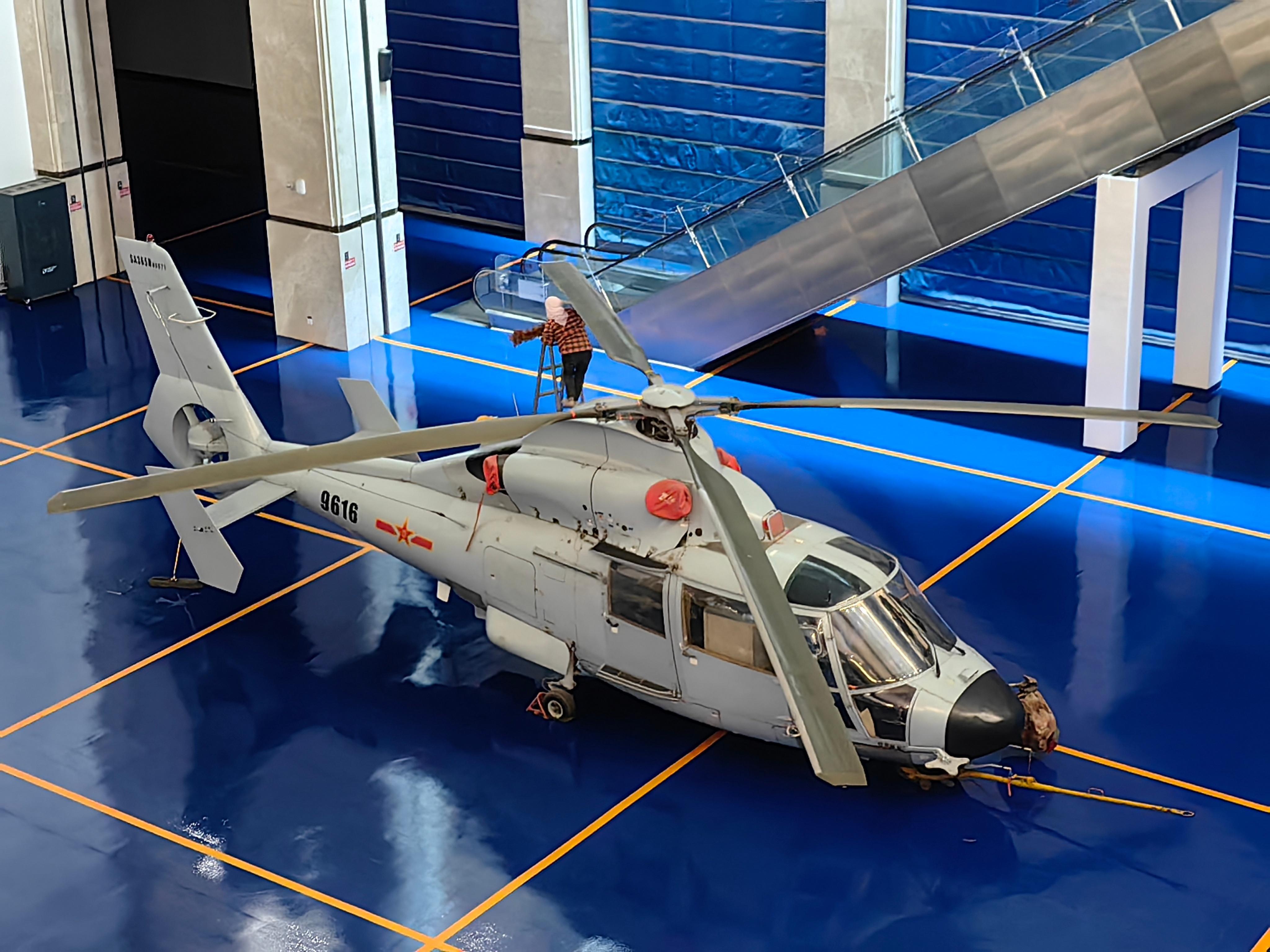 海航首架Z-9,收藏于海博。此机是当年引进海豚生产线后,组装的首批50架之一。机尾还标着原厂型号、编号:SA365N,N6071。