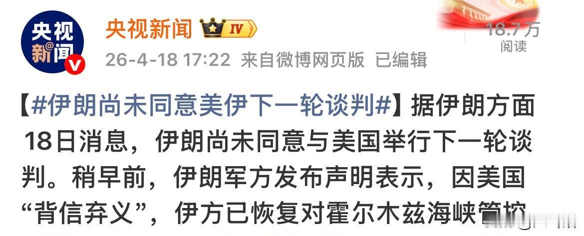 【相当淡定,伊朗称还没有同意和美国进行下一轮谈判】 尽管美国多个场合公开表示本周末将会和伊朗进行新一轮的谈判,但是伊朗似乎并不着急。 伊朗军方表示,伊朗并没有同意和美国再次谈判,且由于美国存在多次‘’背信弃义‘’行为,伊朗宣布全面恢复对霍尔木兹海峡的管控,回到战前状态。 此前特朗普曾表示,如果与伊朗的谈判无法达成长期停火,美军将恢复对伊朗的军事行动。显然美国比伊朗更急于达成停火协议。