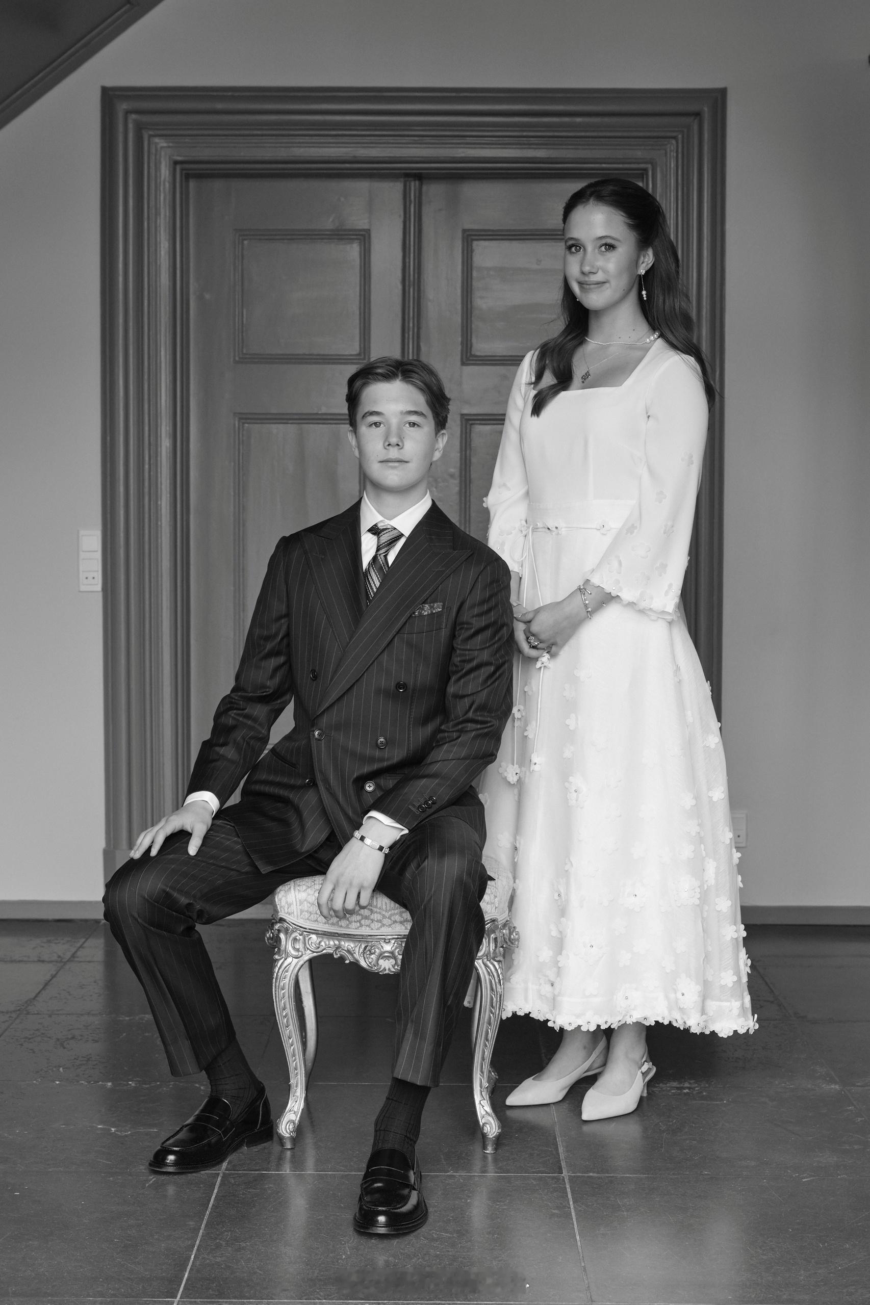 丹麦王室龙凤胎坚信礼官方已经火速修出内部摆拍n张,随手选了个九宫格同一把椅子兄妹俩轮流坐,其中一张用黑白滤镜……有时候也不是很懂摄影师的小巧思