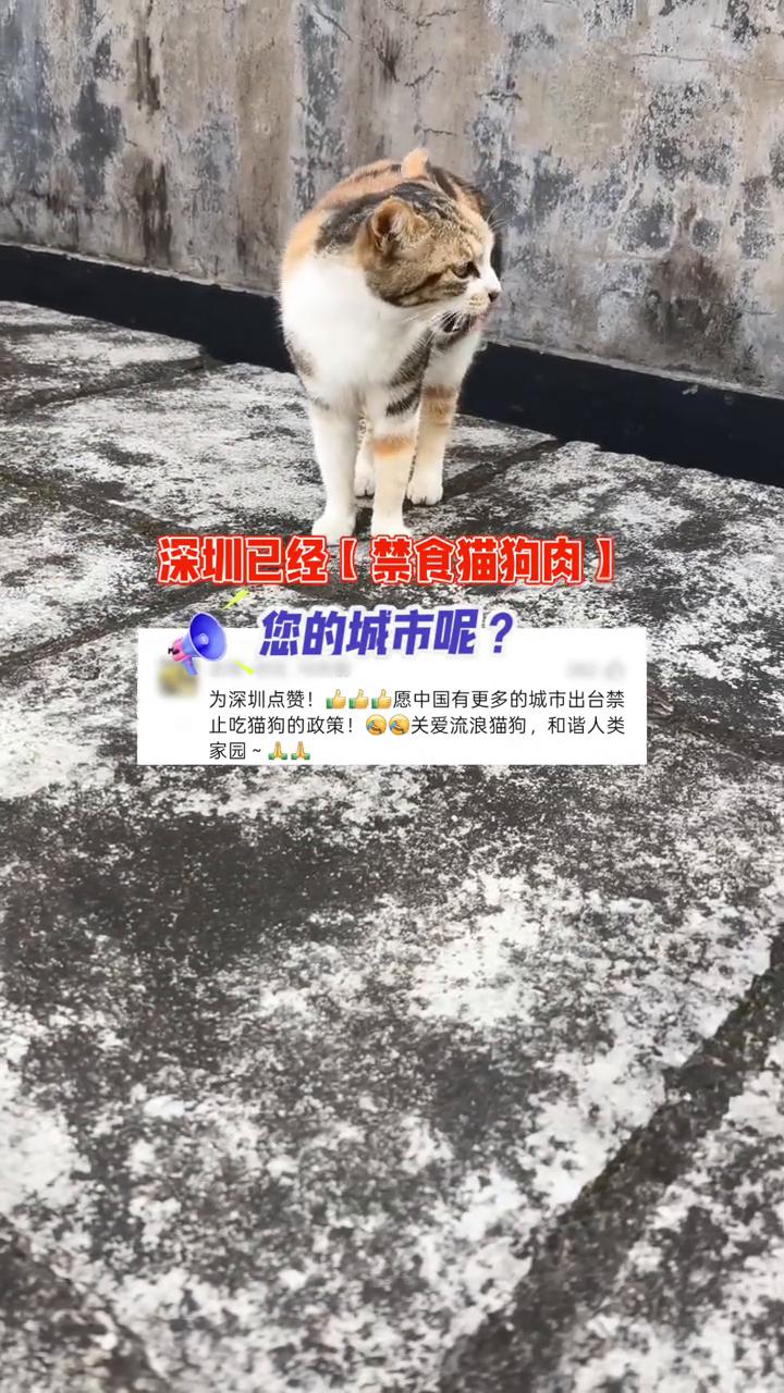 深圳已经禁食猫狗肉,您的城市呢? 为深圳点赞!愿中国有更多的城市出台禁止吃猫狗的政策!关爱流浪猫狗,和谐人类家园。