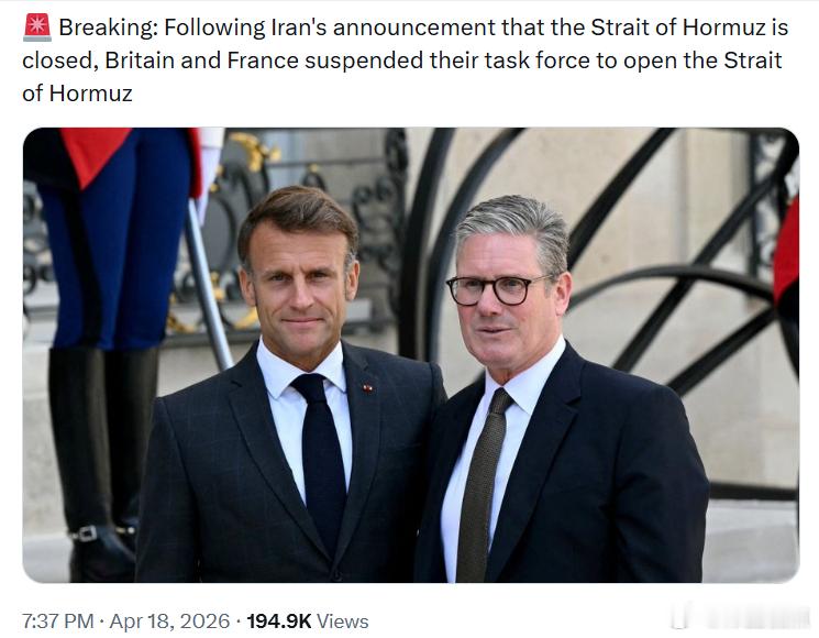 “两只小丑,两只小丑……”在伊朗宣布关闭霍尔木兹海峡后,英国和法国已暂停其旨在重