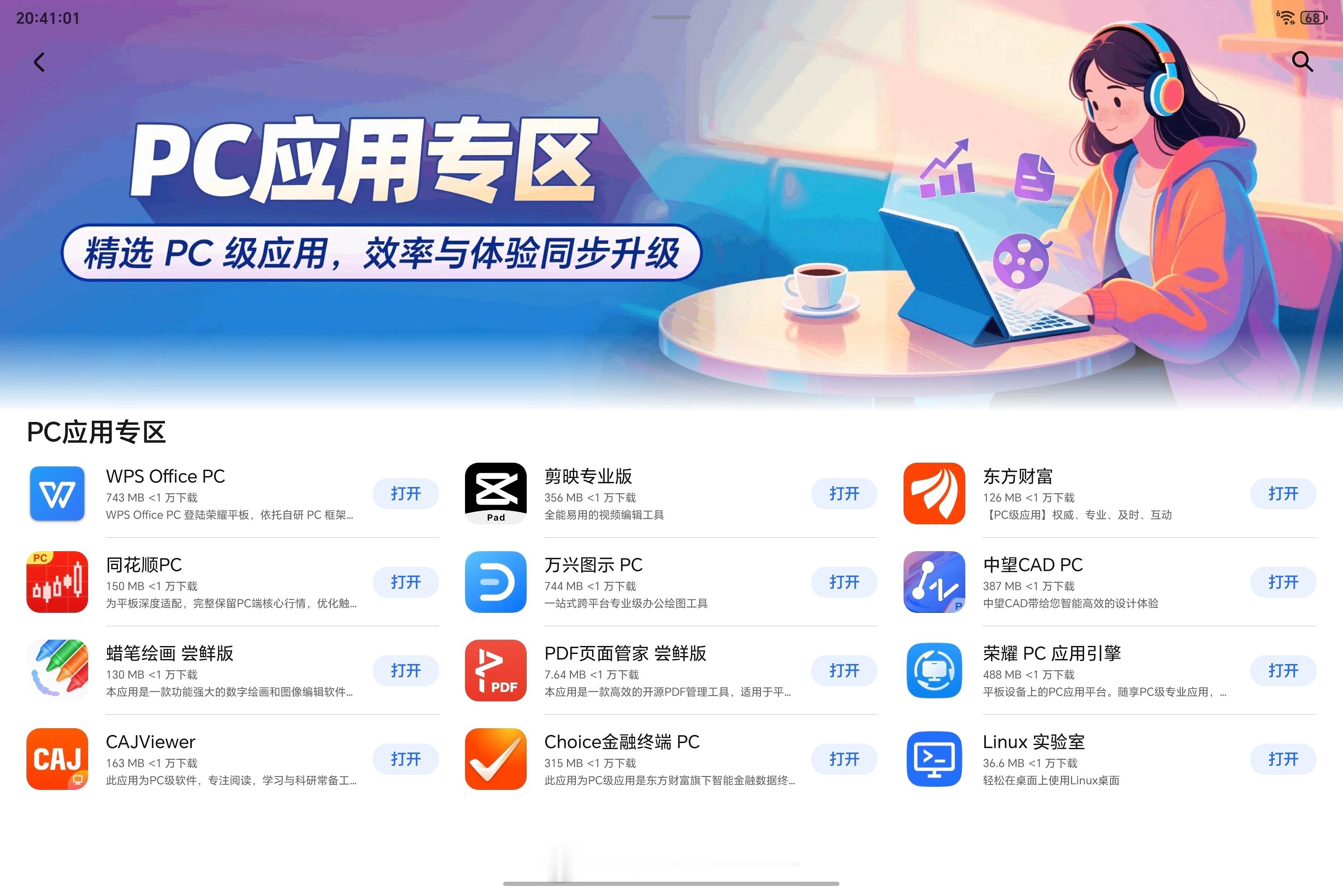 刚浏览荣耀平板电脑PC应用专区,发现新增《东方财富》、《同花顺PC》和《Choice金融终端PC》三个金融PC级应用!下载体验了一下,为平板适配做的很棒,完整保留了PC端核心行情。大屏效率太高了