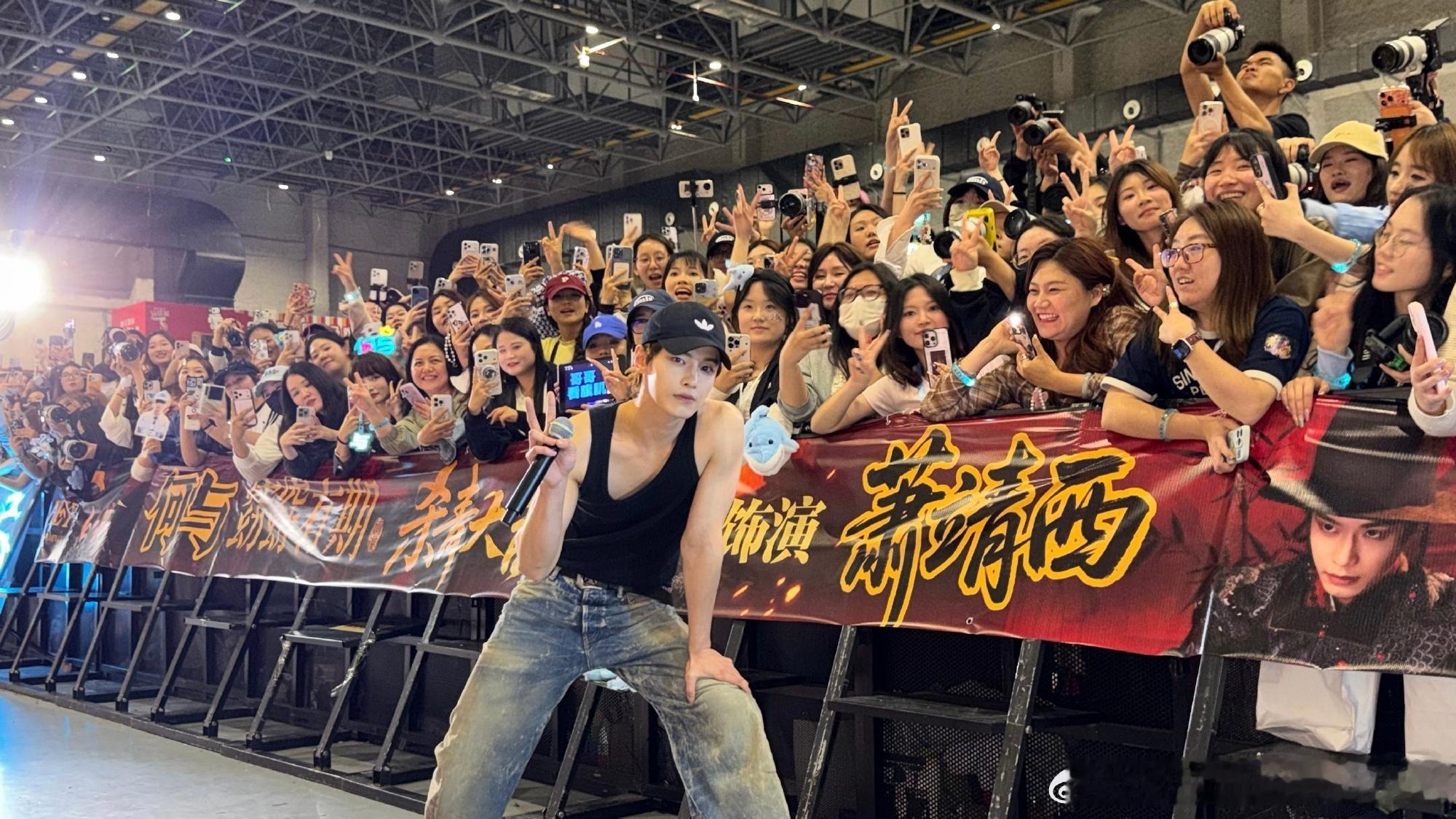 何与窈窈有期杀青现场,和粉丝大合照有啦,杀青快乐!