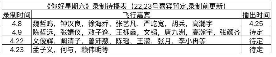《你好星期六》最新录制待播表