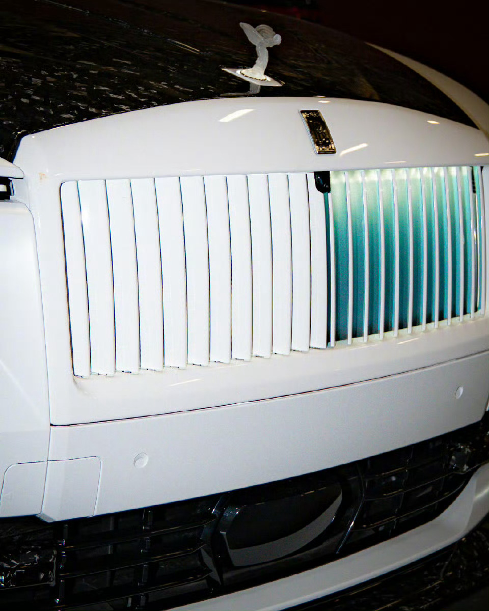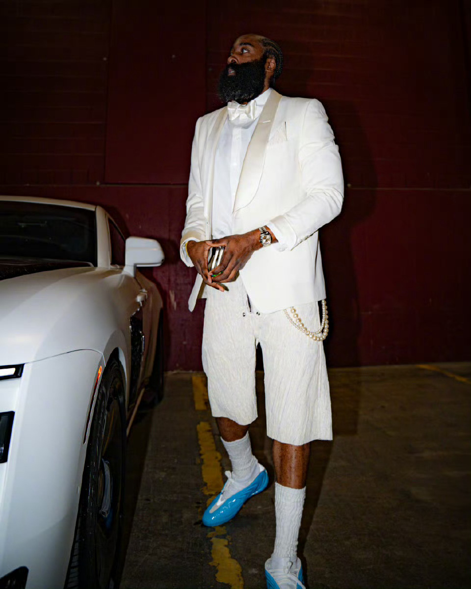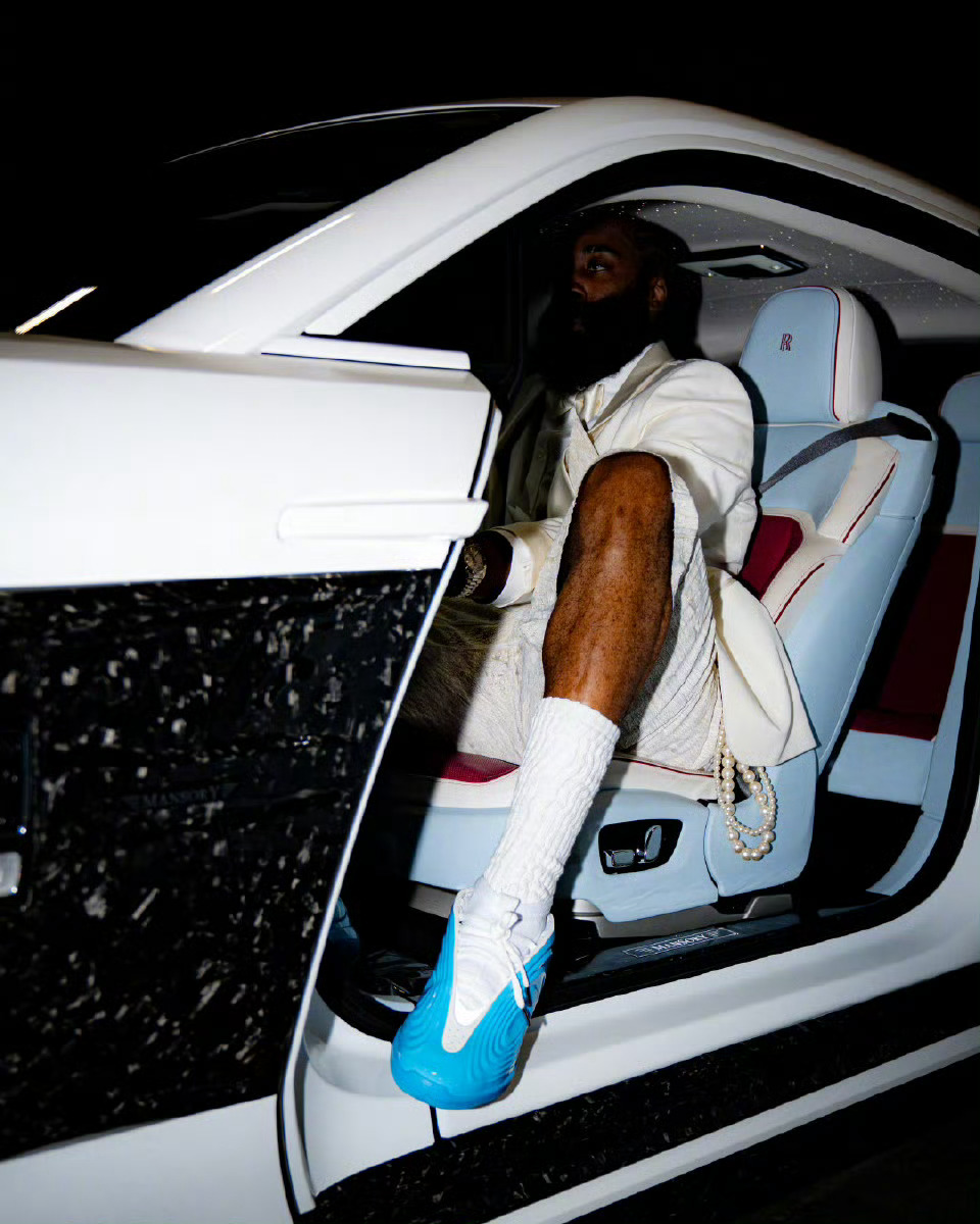 哈登赛前驾驶定制涂装劳斯莱斯抵达火箭贷球馆 这是为了纪念哈登连续17次进入季后赛打造的专属座驾