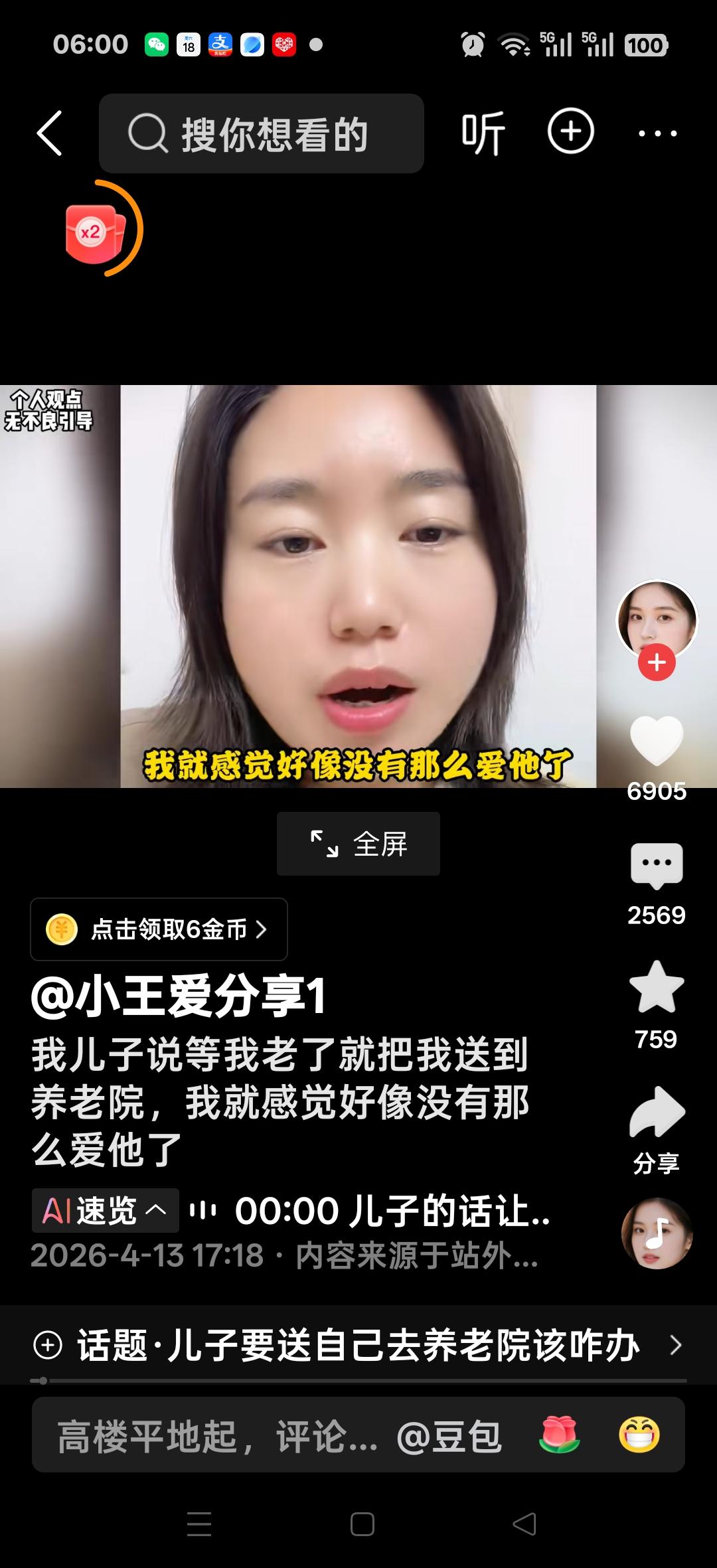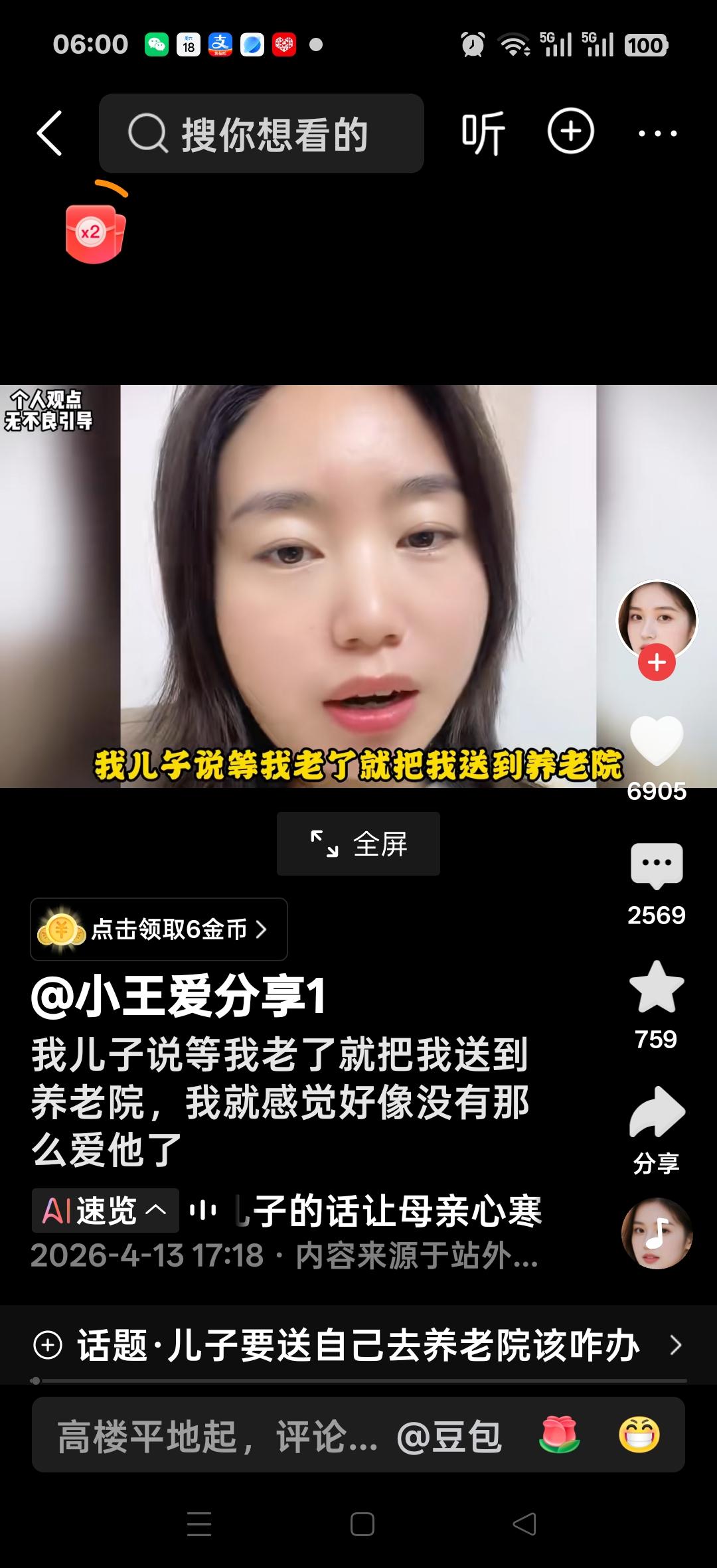 我儿子说了等我老了,把我送到养老院,我就感觉没那么爱他了,我也不要求他学习怎么样了……。网友说:这样的母亲教育方法不可取,一句等她老了,把她送进养老院就不高兴了,就开始采取只顾自己,不想正面教育儿子,也不想以身作则,是个不负责任的母亲!有的人说:你思想有执着,心中有纠结,你儿子是在红尘中渡你,你却朝着反方向平常心,明天与意外谁也不知道,做好自己份内事,把情绪调整好,好好爱自己的家庭,等孩子羽翼丰满再放手,不必过早的放手。有的人说:人性如此对自己的孩子好,都不是心甘情愿的,是个聪明人,好好对自己,随心所欲,活出自我!大家说是这样的吗?