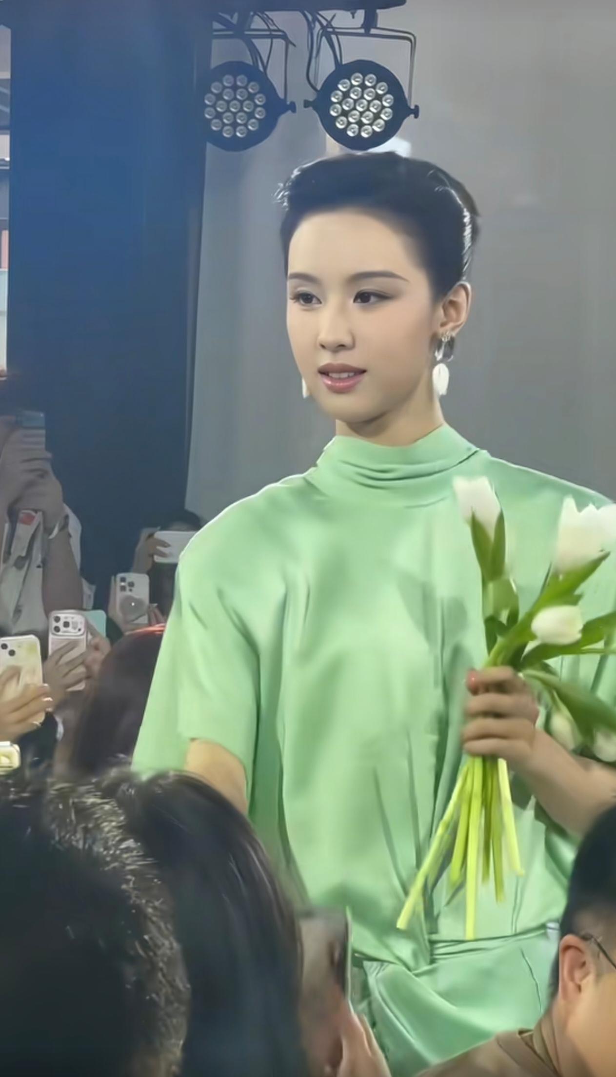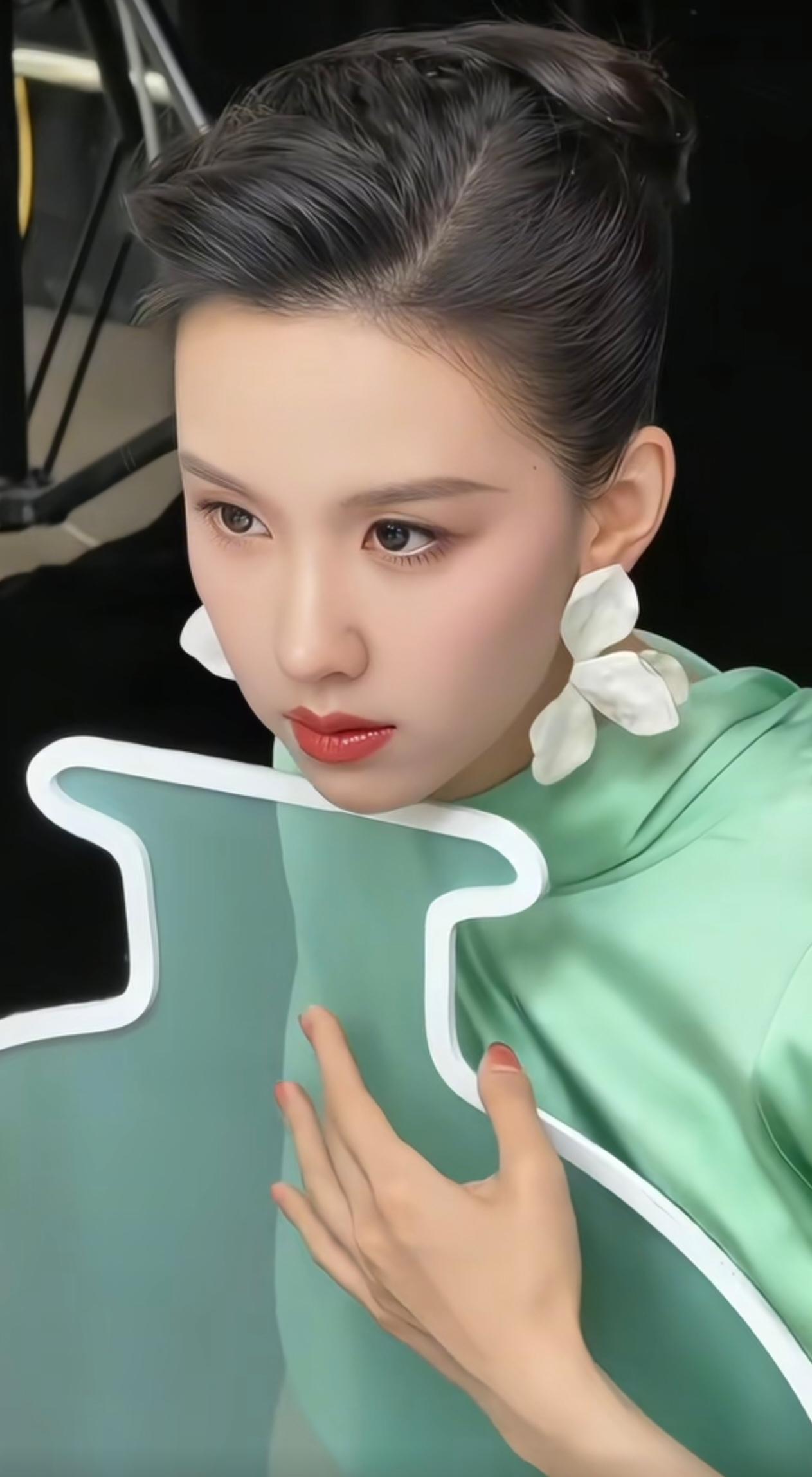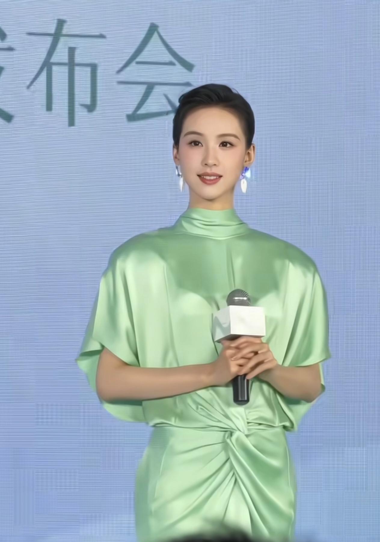 2026年4月18日,陈都灵出席彩棠新品发布会,真的是让人眼前一亮啊! 这次她走的是“青瓷塑骨”路线,一身青绿色缎面长裙,配利落的背头,清爽又大方。 缎面的质感加上这个柔和的绿色,衬得她气质格外干净舒展,有种90年代港星那种端庄优雅的味道。现场她给粉丝递郁金香的样子,也透着温柔从容。 和刚出道时的清纯感比起来,现在的她多了不少贵气和松弛感,整个人的状态越来越舒展,越看越有味道。 这种不刻意、自带的高级感,真的很耐看!