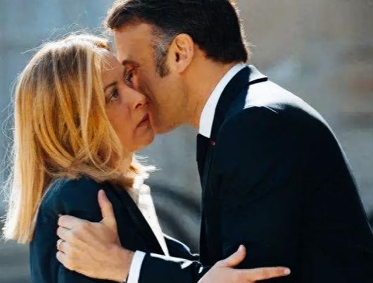 马克龙见了梅洛尼很激动啊!非常的热情啊! 梅洛尼面对马克龙的热情,貌似有点准备不
