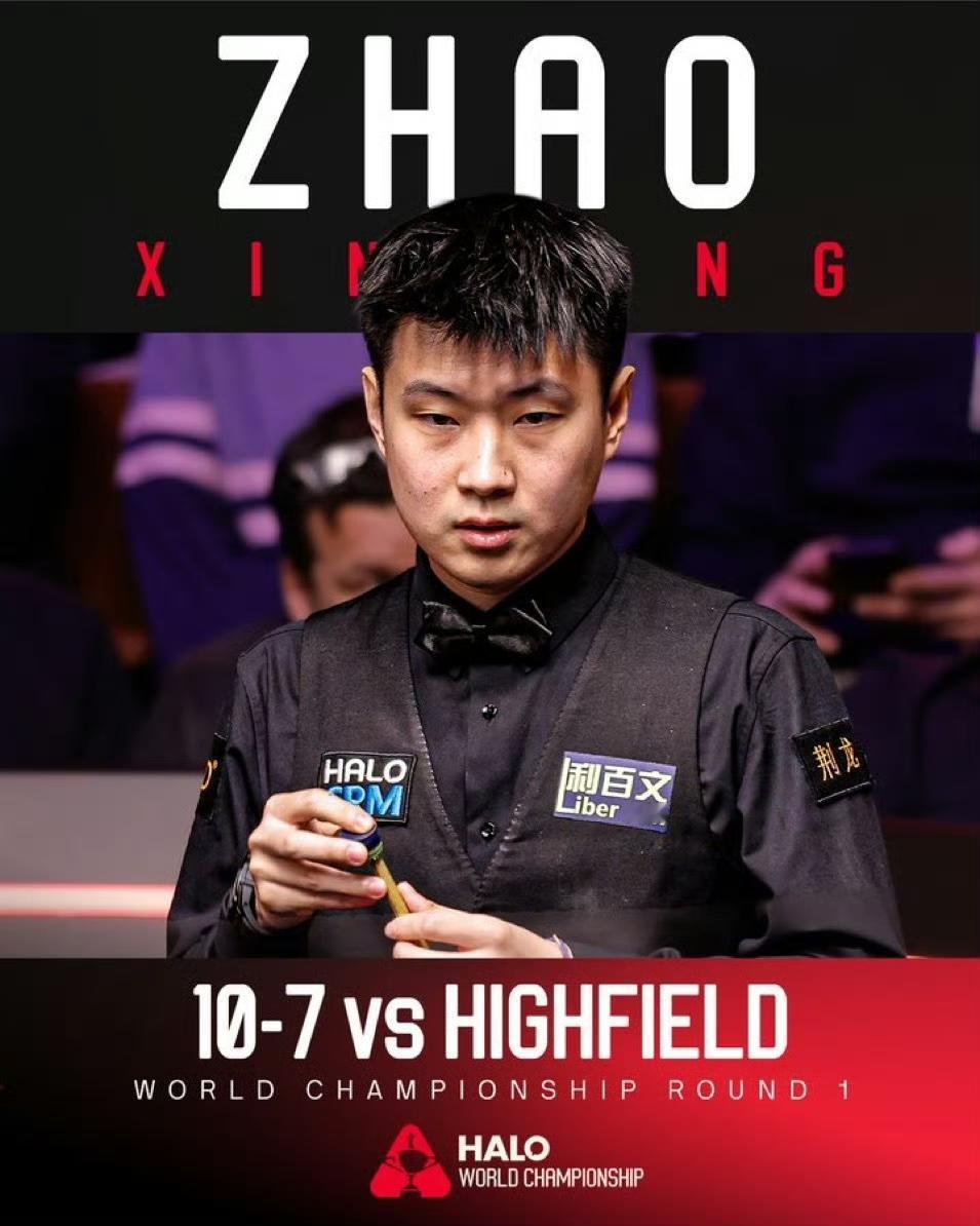 恭喜赵心童,成功晋级16强,8强或再遇丁俊晖! 北京时间4月19日清晨,2026斯诺克世锦赛首轮,卫冕冠军赵心童以10-7战胜海菲尔德,打破了近两届卫冕冠军“一轮游”的魔咒,晋级到第二轮 他在比赛中表现出色,全场打出三杆破百(123、128、112)和三杆50+,第一阶段以5-4领先,第二阶段一度8-5扩大优势,最终完成晋级。 这是赵心童作为卫冕冠军的本届赛事首胜,此前他因外卡身份以业余选手参赛并在2025年世锦赛历史性夺冠,成为首位以非职业身份赢得世锦赛冠军的球员。此次晋级后,他将在1/8决赛中对阵丁俊晖与大卫·吉尔伯特之间的胜者。 值得一提的是,本届世锦赛共有11名中国选手进入正赛,创下历史新高,其中赵心童是唯一一位从资格赛打起并最终夺冠后再度征战正赛的卫冕冠军。他目前也被视为夺冠热门之一,赔率排名高居榜首。 本场比赛,赵心童状态不佳,失误连连,多次将超分球打失,给了对手很多上手机会。赵心童有五天休息时间,希望他尽快找到昔日的手感,最终实现世锦赛卫冕! 再次恭喜赵公子,成功晋级16强!